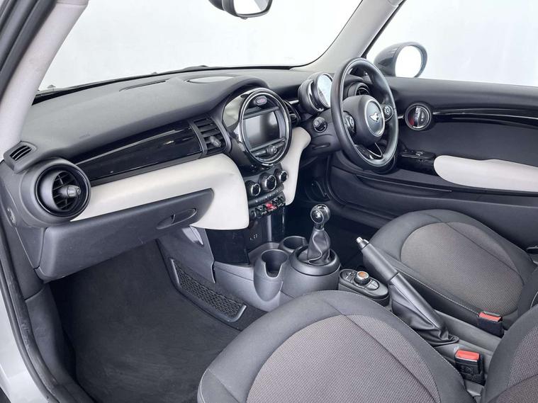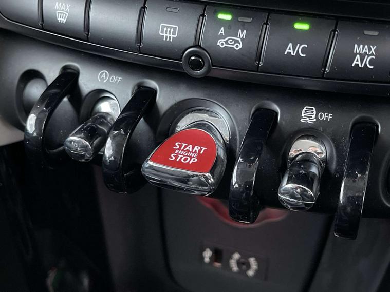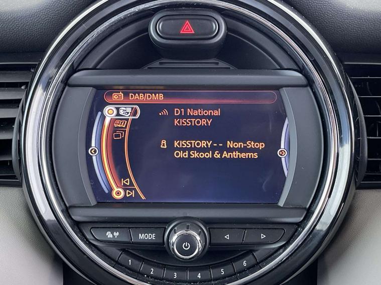 This Mini comes with 16in Alloy Wheels – Victory Spoke in Black, Automatic Dual-Zone Air Conditioning, Bonnet Stripes in Black, and Satellite Grey interior trim paired with Firework Cloth in Carbon Black.