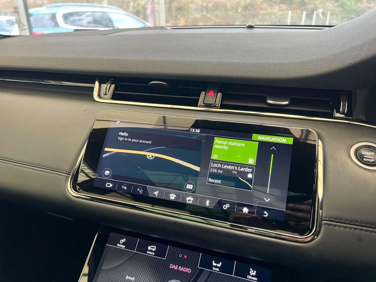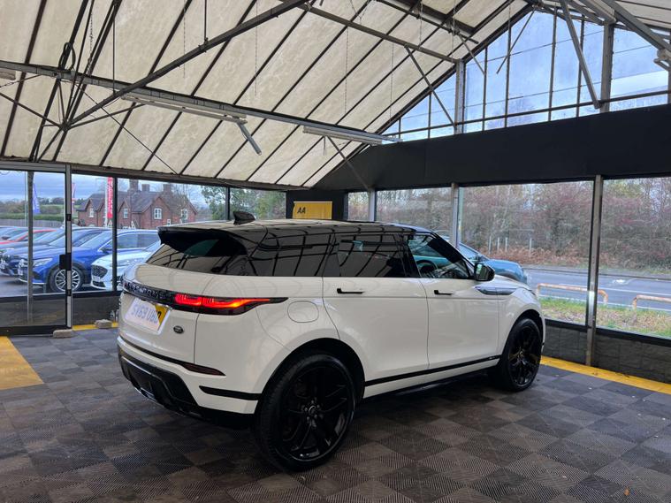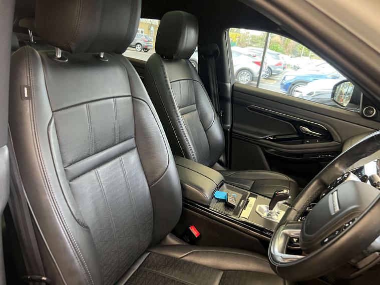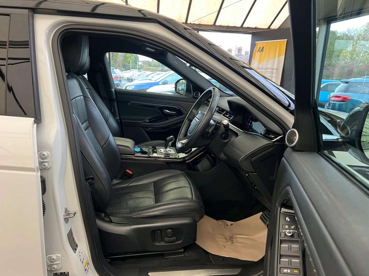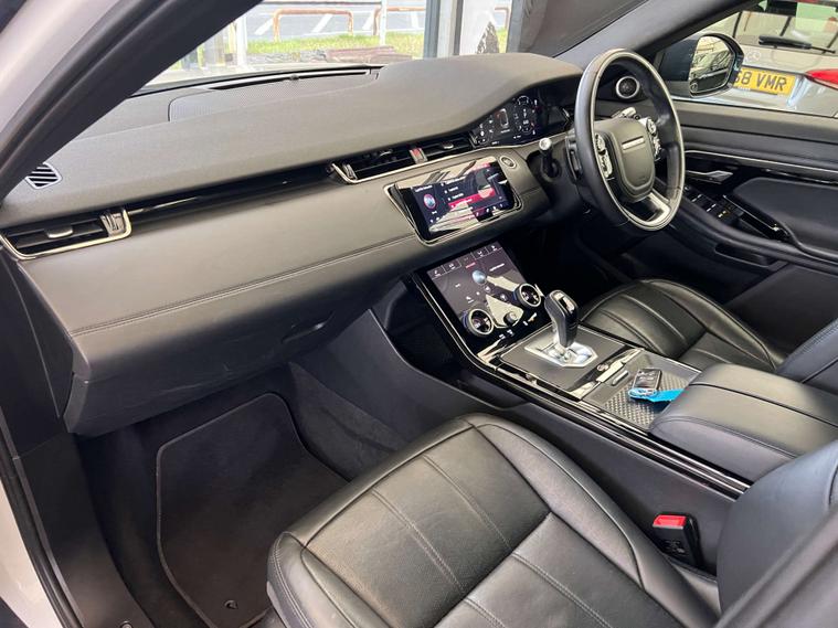 Finished in a pristine Fuji White, the Land Rover Range Rover Evoque exudes sophistication and elegance, turning heads wherever it goes. Step inside and be enveloped by the serene ambience created by the Light Oyster Morzine headlining, offering a touch of class to every journey.