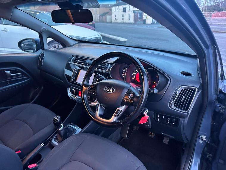 Finished in a stunning Blue colour, the Kia Rio exudes sophistication and modernity. Its sleek design and aerodynamic shape not only look good but also enhance fuel efficiency, making it a practical choice for everyday driving.
