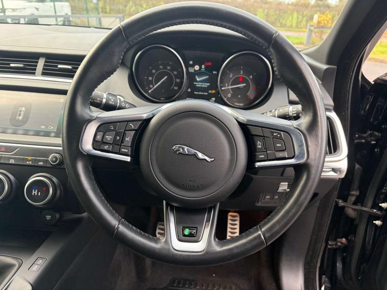 This 2019 Jaguar E-PACE D150 R-Dynamic S is presented with a clear vehicle history check, offering you peace of mind. This stylish compact SUV features a 2.0L diesel engine, meeting Euro 6 emissions standards, and is finished in the desirable R-Dynamic S trim. Inside, you'll find comfortable 10-way heated electric front seats, automatic headlights, and a 2-zone climate control system to ensure comfort for all occupants. Stay connected and entertained with Bluetooth connectivity and Apple CarPlay integration.