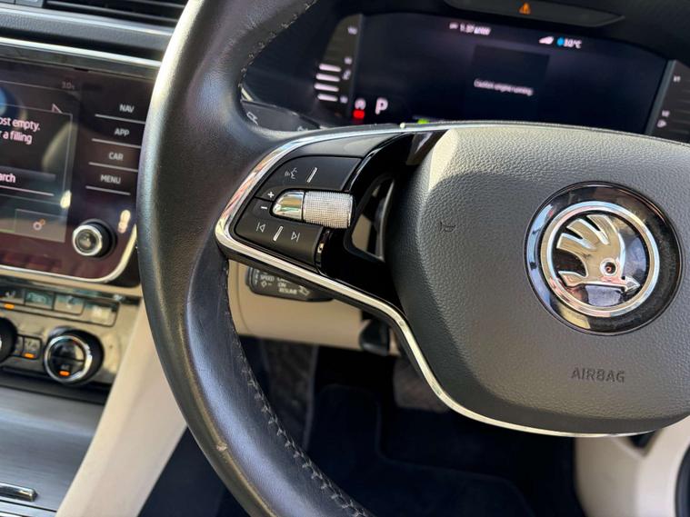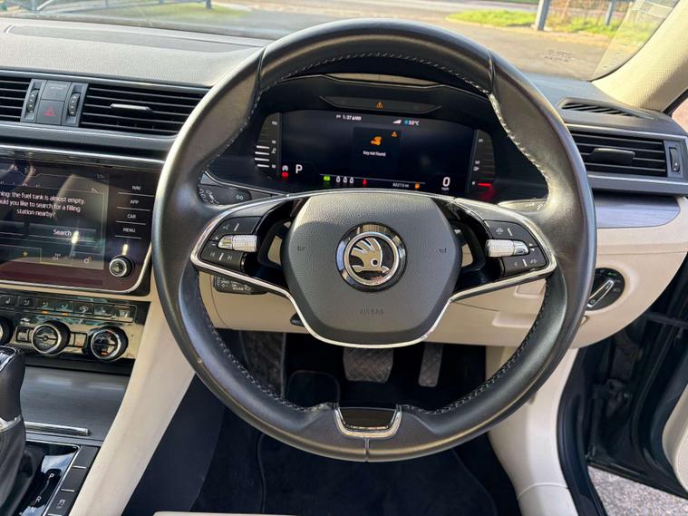 This 2021 Skoda Superb TSI SE L boasts a full service history and a clear vehicle history check, offering you complete peace of mind. Powered by a 2.0 litre Euro 6 compliant petrol engine, this SE L trim model combines efficiency with performance. You'll appreciate the convenience of Bluetooth connectivity, dual zone air conditioning with a humidity sensor, and the advanced safety of Blind Spot Detection. For effortless journeys, Adaptive Cruise Control is fitted, and the Full Matrix LED Headlights with AFS and LED Daytime Running Lights ensure excellent visibility.