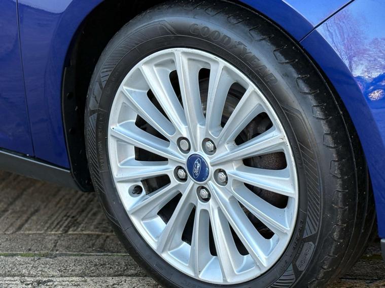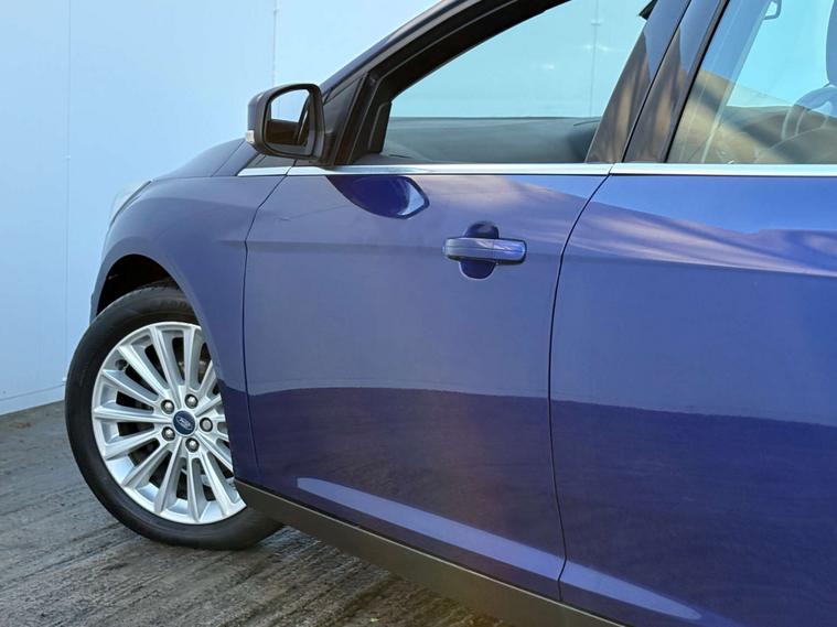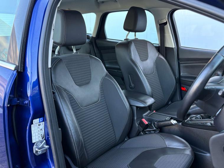 Dressed in an eye-catching Deep Impact Blue, the Ford Focus exudes sophistication and elegance. The exterior is complemented by the luxurious Pur Cloth-Torino Leather interior in Charcoal Black, offering a comfortable and stylish driving experience.