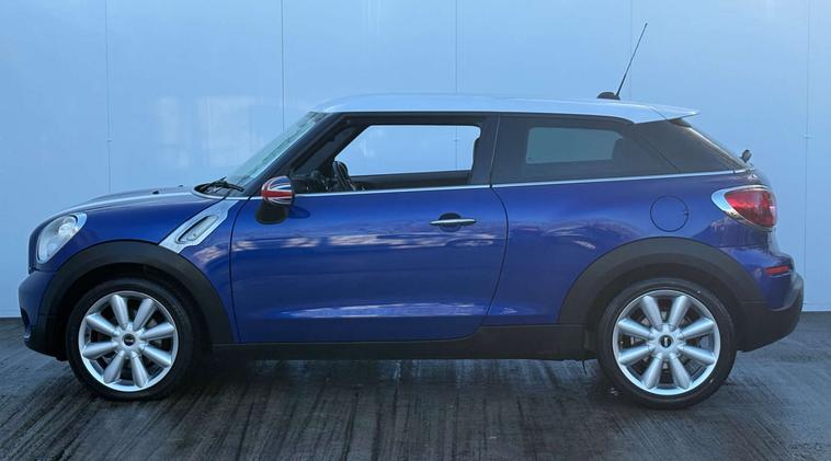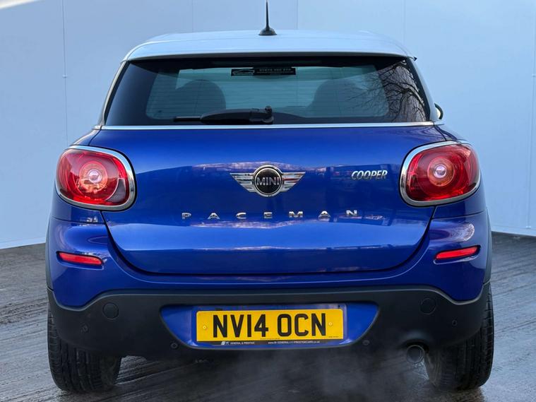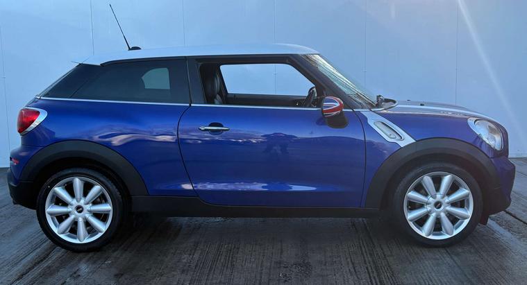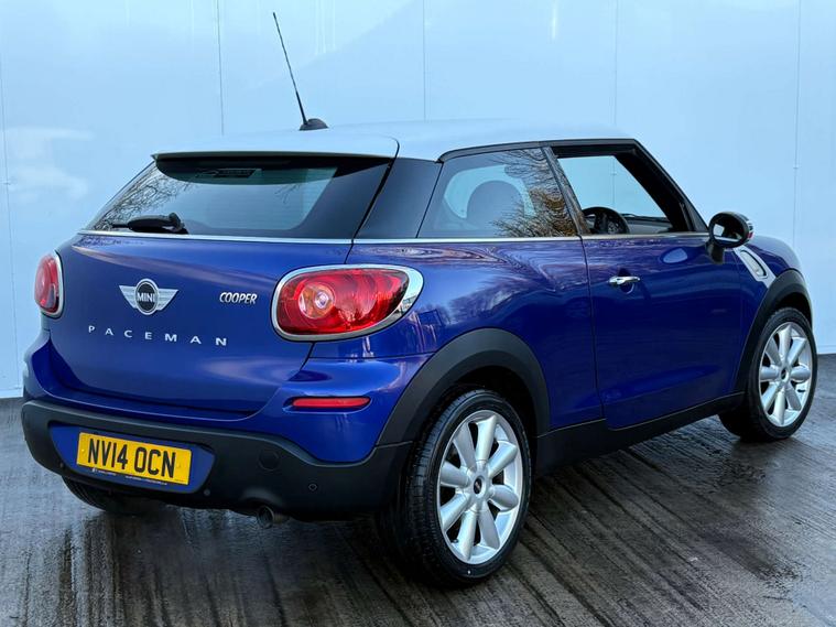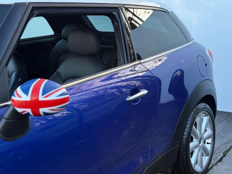 Safety and convenience are paramount, with features such as Rain Sensor and Automatic Headlight Activation, Front Fog Lights, and White Direction Indicators Lights. The Roof and Mirror Caps in White add a distinctive contrast to the Starlight Blue body, making this Mini Paceman truly unique.