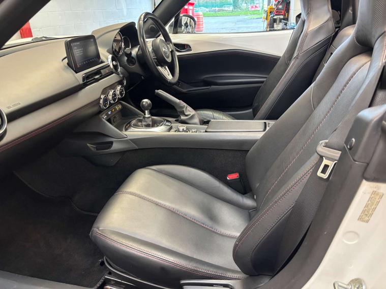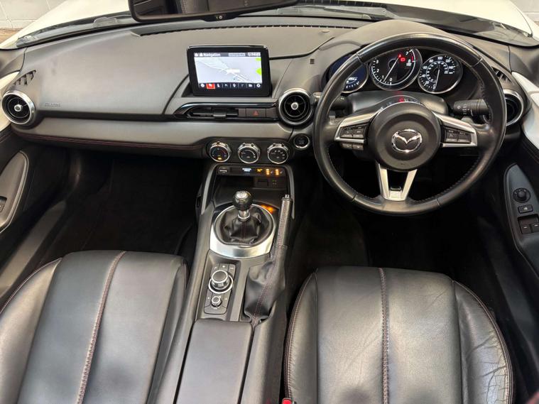 We Specialise selling MX-5's, check out our website for our up to date stock list. This MX-5 will be Supplied with a comprehensive 6 Month Unlimited Mileage Warranty a used car check and new MOT plus 12 months free AA breakdown cover. We offer Competitive Finance subject to status please call for a quotation or log onto our website to use our Finance Calculator. Three owners from new with five services from new. It has Black leather upholstery with red stitching and Heated front seats. Satellite Navigation, Bluetooth Phone and Bose Hi Fi. Optional Rear parking camera and sensors. Cruise control or speed limiter. Multi function computer. Cupholders. Automatic Air conditioning. Multi function steering wheel. Lane Assist. Rain sensing wipers and automatic dipping rear view mirror. Electric wing mirrors. Automatic LED Headlights. Keyless entry and ignition. 16" alloy wheels. Catchless electric folding roof. Cobalt Sports exhaust, this enhances the sound of the car without it being intrusive inside. Immaculate condition throughout. Hpi Clear. Part Exchange Welcome. We are located in Cwmbran by appointment only, please contact Chris to book your appointment:- Call-Text or WhatsApp 01633922672.