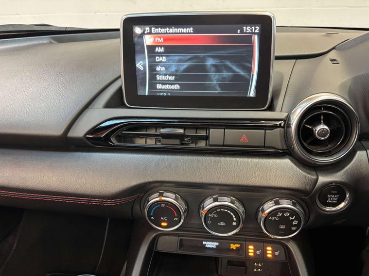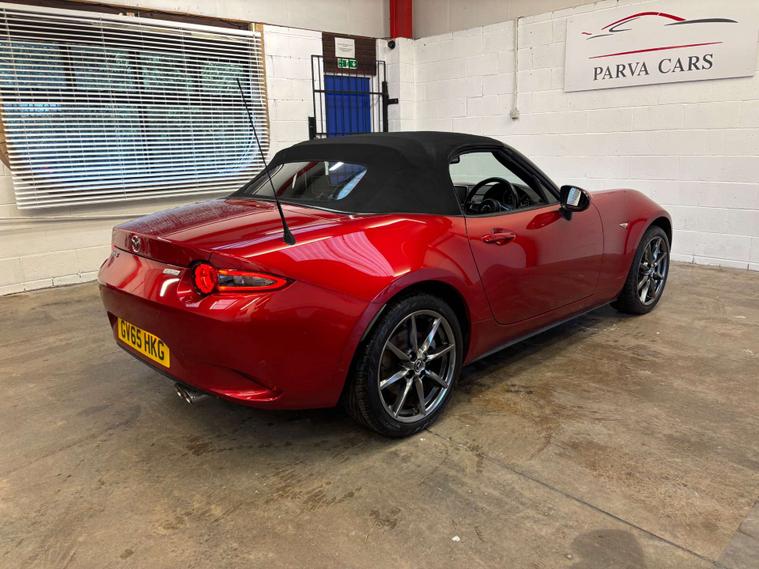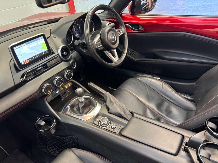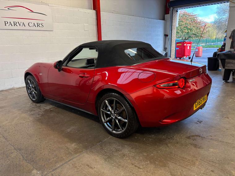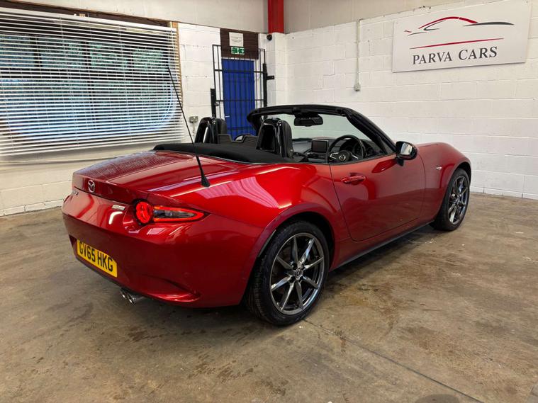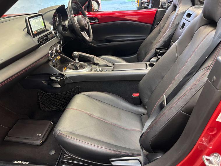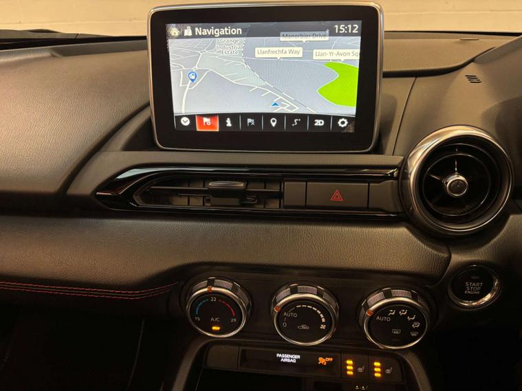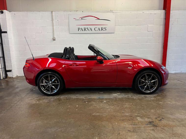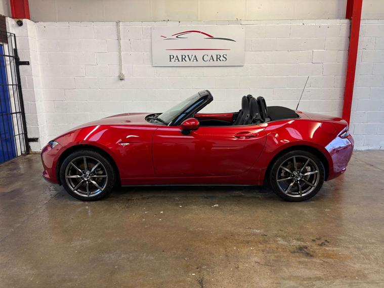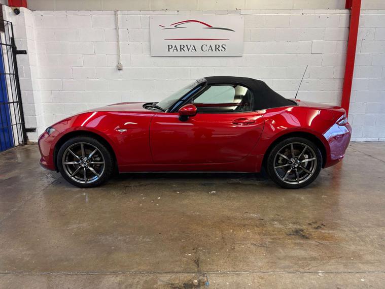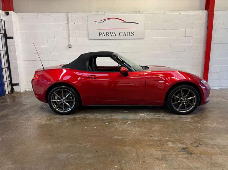 We Specialise selling MX-5's, check out our website for our up to date stock list. This MX-5 will be Supplied with a comprehensive 6 Month Unlimited Mileage Warranty a used car check and new MOT plus 12 months free AA breakdown cover. We offer Competitive Finance subject to status please call for a quotation or log onto our website to use our Finance Calculator. Three owners from new with full documented service history. It has Black leather upholstery with red stitching and Heated front seats. Satellite Navigation, Bluetooth Phone and Bose Hi Fi. Rear parking sensors. Cruise control or speed limiter. Multi function computer. Cupholders. Automatic Air conditioning. Multi function steering wheel. Lane Assist. Blind Spot monitor. Rain sensing wipers and automatic dipping rear view mirror. Electric wing mirrors. Automatic LED Headlights. Keyless entry and ignition. 17" alloy wheels. Cobalt Sports exhaust, this enhances the sound of the car without it being intrusive inside. Immaculate condition throughout. Hpi Clear. Part Exchange Welcome. We are located in Cwmbran by appointment only, please contact Chris to book your appointment:- Call-Text or WhatsApp 01633922672.