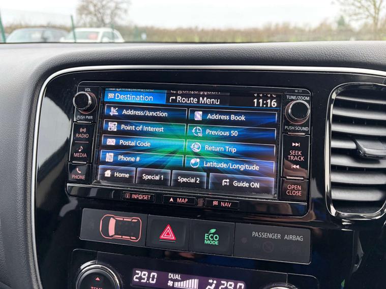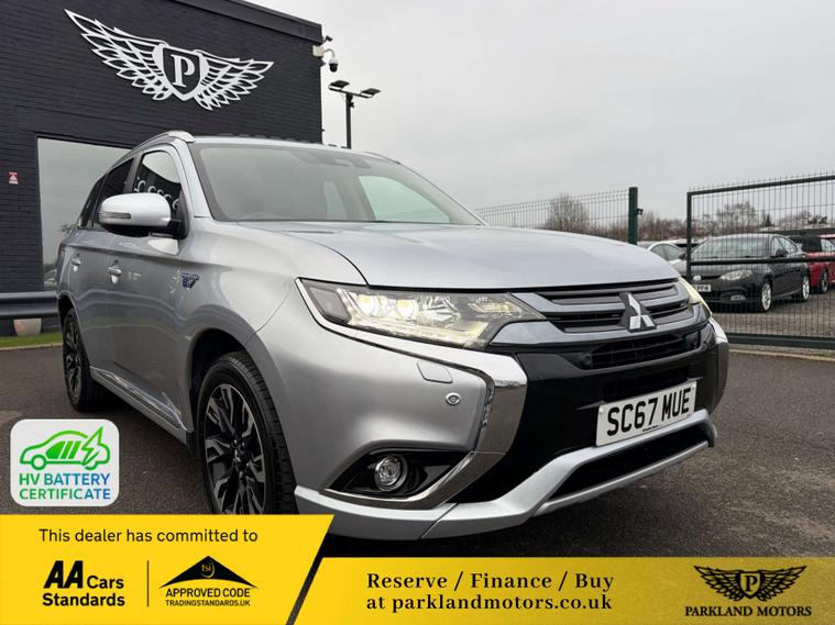 This 2018 Mitsubishi Outlander 4HS presents an exceptional opportunity with its remarkably low mileage of just 44, 178 miles. This four wheel drive, Euro 6 compliant, 2.0 litre petrol plug in hybrid model offers an efficient and capable driving experience. Inside, you'll find comfort and convenience with dual climate control air conditioning and heated front seats. The advanced 360 degree camera system aids parking, while dusk sensing headlights ensure visibility. Connectivity is seamless thanks to Apple CarPlay support.