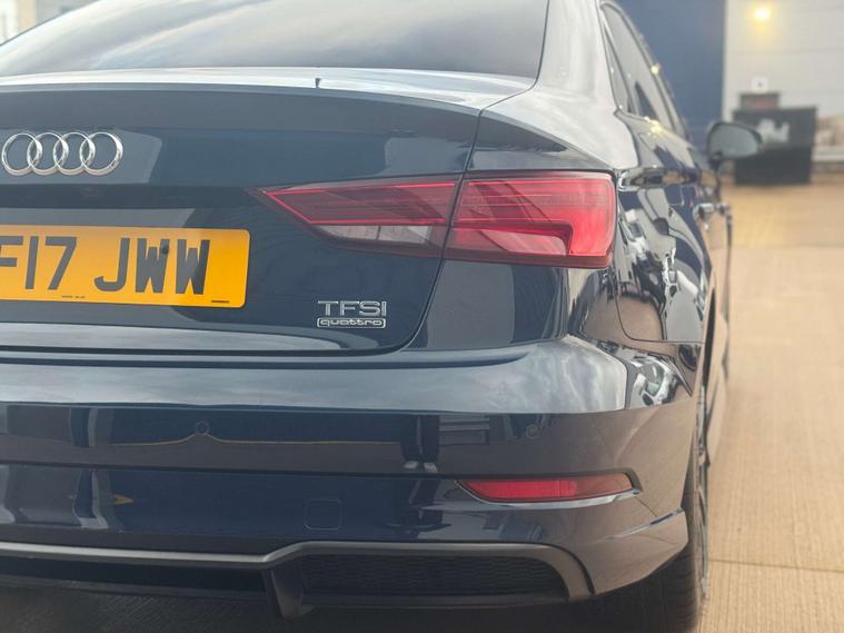 If you're looking for a premium saloon that delivers sporty styling, refined performance, and Audi’s renowned Quattro confidence, this Audi A3 S Line Black Edition TFSI Quattro is the perfect match. This example comes packed with highly desirable optional features such as, Comfort & Sound Pack, Technology Pack, Parking system plus front and rear with selective display (Rear View Camera), Electrically Folding Wing Mirrors, Dynamic Suspension, Cosmos Blue Metallic Paint, Brushed Aluminium interior & Many more.. The vehicle also boasts a vast comprehensive service record of over 7 main dealer stamps, most recently benefitting from a Brake Fluid Service, along with gearbox oil, Oil for all wheel drive coupling, Spark Plugs, Air Cleaner Element on 02/06/2025 at 90, 247 Miles. We will supply the vehicle with a fresh MOT addressing any advisories that might be needed, ensuring peace of mind motoring for the foreseeable to the next owner. We will also supply the vehicle with 2 Keys, Book Pack with service history print out, as well as the locking wheel nut. For any questions, please do get in touch.