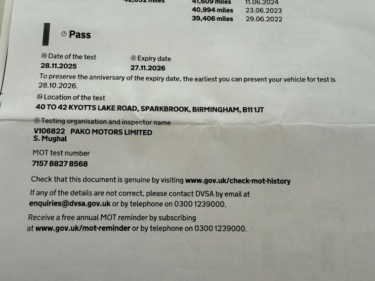 MOT Expiry: 27/11/2026