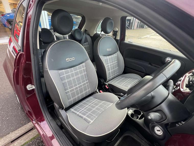 With just two previous owners, this Fiat 500 has been lovingly cared for, and it shows. Its striking Red finish is sure to turn heads wherever you go, while the interior is a delightful blend of sophistication and comfort. The Cloth upholstery in Black-Light Grey-Ivory with Black Ambience, complemented by the Avantgarde Bordeaux accents, creates an inviting and stylish cabin that you'll love spending time in.