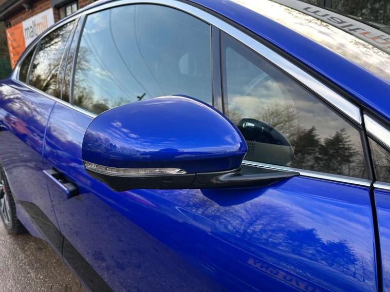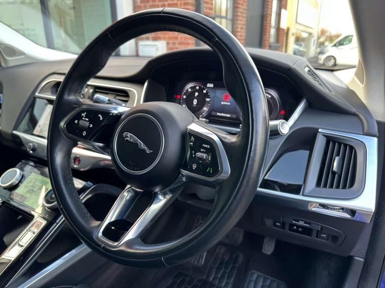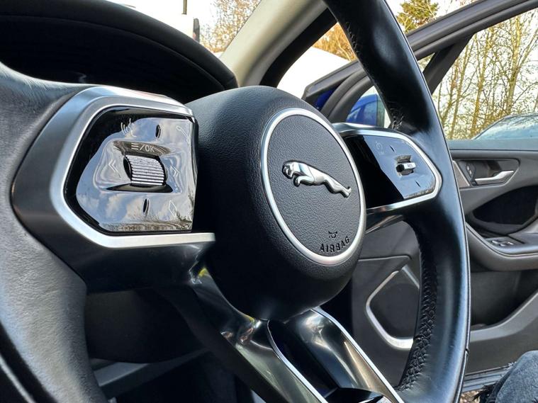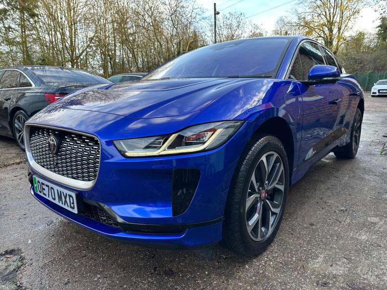 KEY INFO -EXCELLENT CONDITION - What a fantastic looking car in this blue that just pops, Comes with full black leather interior and all the gadgets you'll ever need including sat nav, bluetooth, cruise control, 360 cameras, heated seats, heated steering wheel, upgraded sound system and so much more. Jaguar boasts this car will return you 278 miles on a charge and comes with 2 charging cables. This car has full Jag service history and will come with a 12 month MOT. Supplied with 2 keys. I've personally driven this car and it's lovely and if you want a bit of speed its got that in buckle loads pushing 395bhp