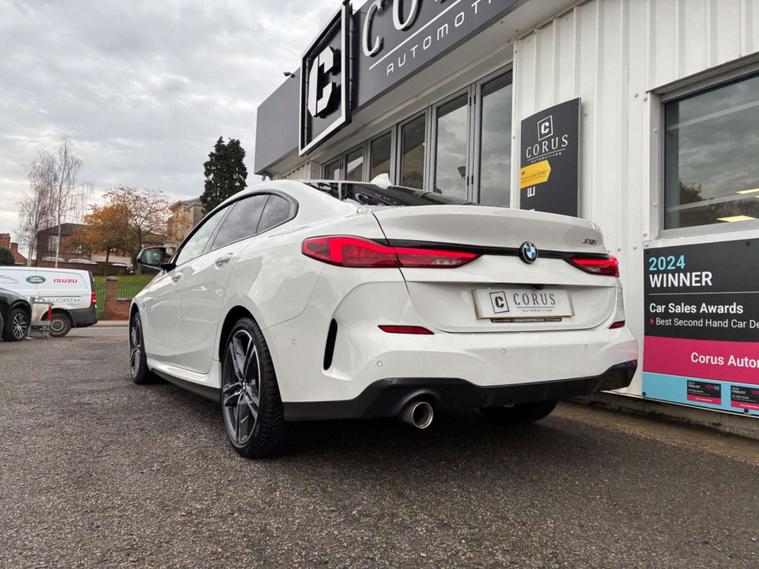 This 2020 BMW 2 Series Gran Coupe 218i M Sport is presented with a clear vehicle history check, offering peace of mind. This stylish M Sport trim vehicle features a 1.5 litre petrol engine and meets Euro 6 emission standards. Inside, you will find the comfort of Perforated Dakota Leather in Black with a Blue Highlight, complemented by a premium Harman Kardon loudspeaker system for an enhanced audio experience. Driving convenience is further assured with the Park Assistant, which includes front and rear Park Distance Control and a rear camera, alongside a rain sensor that automatically activates the headlights.