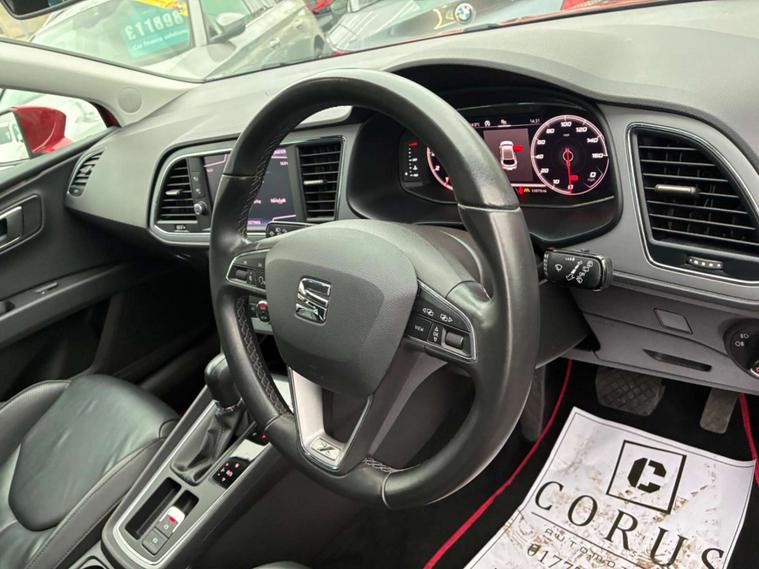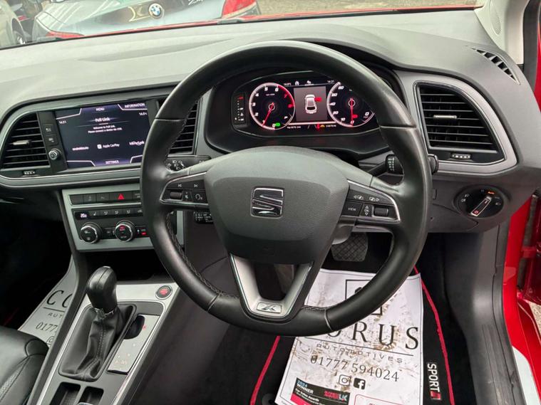 This 2020 SEAT Leon TSI EVO XCELLENCE Lux presents an exceptional opportunity with its remarkably low mileage of just 33, 852 miles for its age, and boasts a clear vehicle history check. This Euro 6 compliant 1.5 litre petrol model, in the XCELLENCE Lux trim, comes equipped with a comprehensive Driving Assistance and Safety Pack, featuring adaptive cruise control and automatic headlights, alongside a Convenience Pack Plus. For added ease, it includes a rear view camera for parking assistance and dual zone climate control to ensure comfort for all occupants.