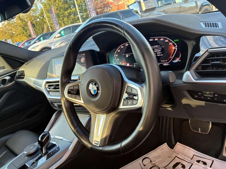 This 2022 BMW 4 Series M440i represents a superb example of its kind, having been cherished by only one owner since new. It boasts a powerful 3.0L Petrol Hybrid engine, paired with a sophisticated Four Wheel Drive system, all while adhering to the Euro 6 emission class. Inside, you'll find the luxurious BMW Individual Extended Merino Leather in Black, complemented by the Comfort Plus Package which includes Keyless Entry, Seats with Memory function, and a Heated Steering Wheel for those colder mornings. The Technology Plus Pack enhances your driving experience with a Premium Branded Sound System and a 360 Degree Camera for effortless parking.
