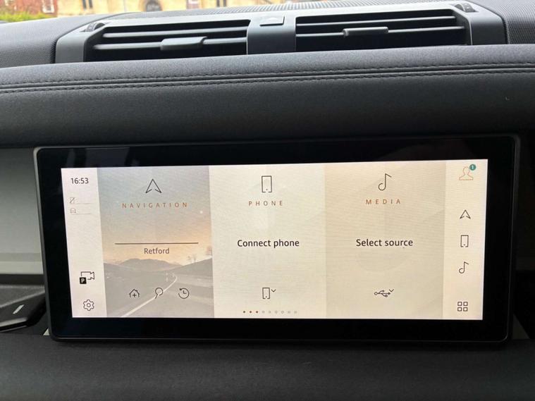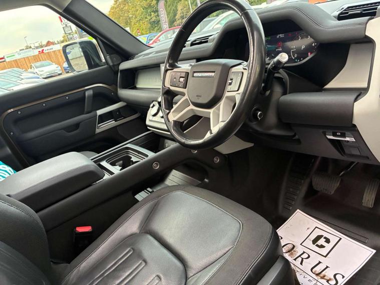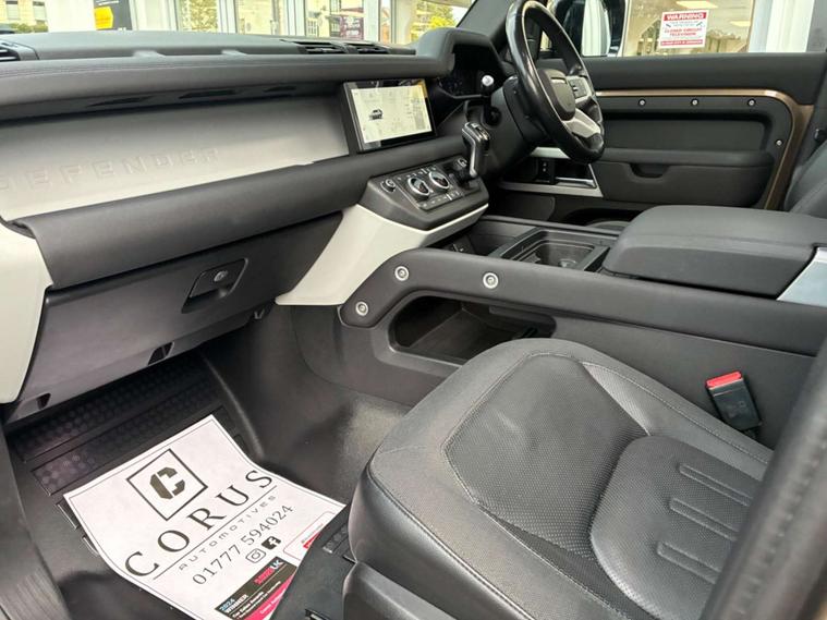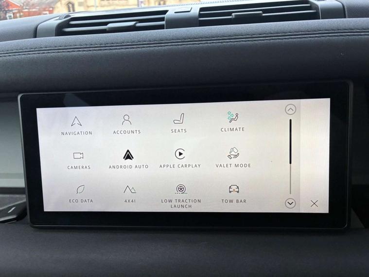 This 2020 Land Rover Defender 110 SD4 First Edition boasts a clear vehicle history, offering you peace of mind. This capable four wheel drive model is powered by a 2.0 litre diesel engine, meeting Euro 6 emission standards. It comes equipped with a range of notable features designed for both comfort and utility, including Advanced Tow Assist with an integrated towbar, and rugged off road tyres for tackling any terrain. Inside, you'll appreciate the Meridian Sound System for an immersive audio experience, alongside an Air Quality Sensor and seamless Apple CarPlay integration.