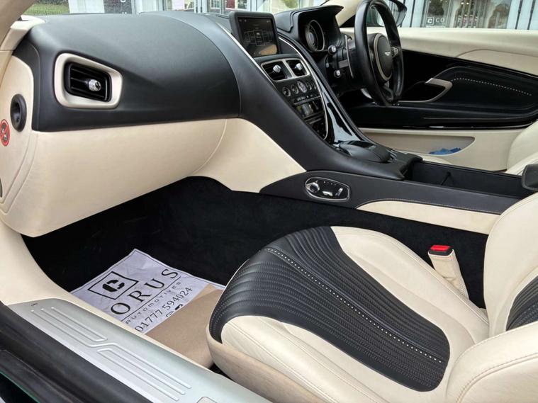 This 2017 Aston Martin DB11 V12 offers an exceptional driving experience, powered by a robust 5.2 litre Euro 6 compliant petrol engine. The interior is designed for comfort and sophistication, featuring automatic temperature control with dual zone climate control, ensuring a pleasant cabin environment for all occupants. Entertainment is provided by the impressive Bang & Olufsen BeoSound audio system, a luxury branded sound system that delivers unparalleled acoustics. Further enhancing the refined cabin are the headrest embossed Aston Martin wings, a subtle yet distinctive touch.
