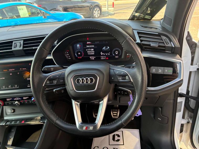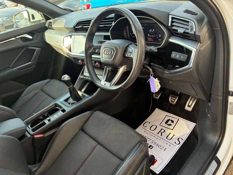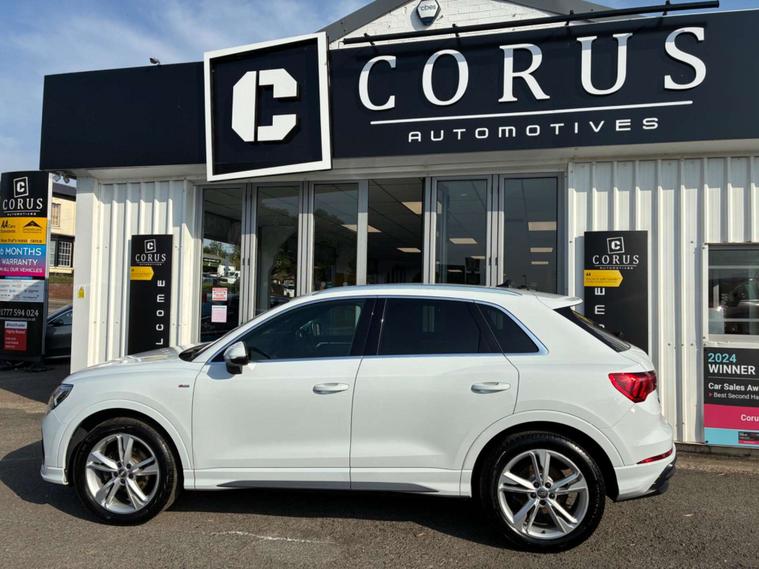 This 2019 Audi Q3 TFSI S line boasts a clear vehicle history, offering you peace of mind. Powered by a 1.5 litre petrol engine and meeting Euro 6 emissions standards, this S line trim model combines style with efficiency. You'll appreciate the advanced LED headlights featuring dynamic rear indicators and automatic on functionality, complemented by the convenience of dual zone electronic climate control and a Bluetooth interface for seamless connectivity. The Audi Side Assist provides an extra layer of safety by monitoring your blind spots, while the light and rain sensor automatically adjusts your lighting and wipers.