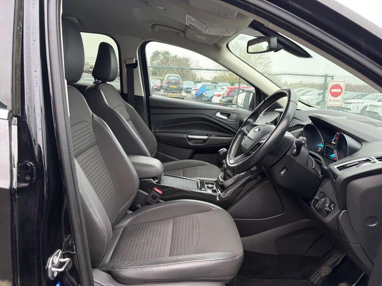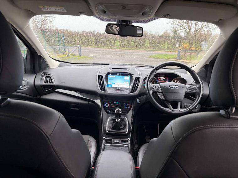 Introducing the Ford Kuga 1.5 Kuga Titanium TDCI 5dr, a sleek and stylish SUV that is sure to turn heads on the road. This impressive vehicle has had 2 owners and is finished in a striking Black colour, adding a touch of sophistication to its already impressive design.