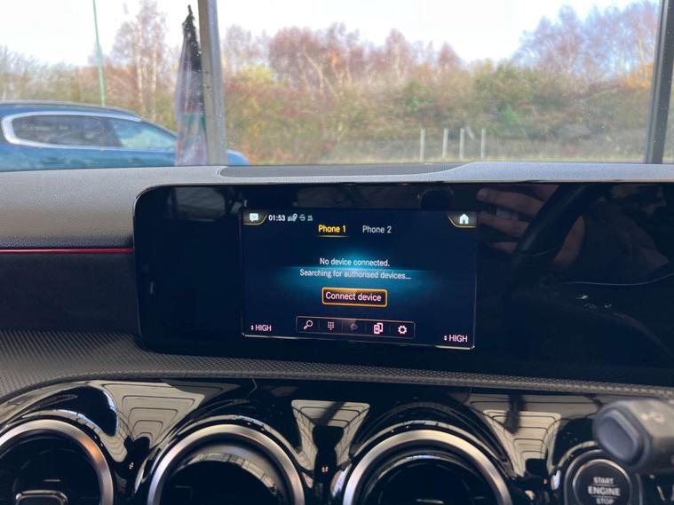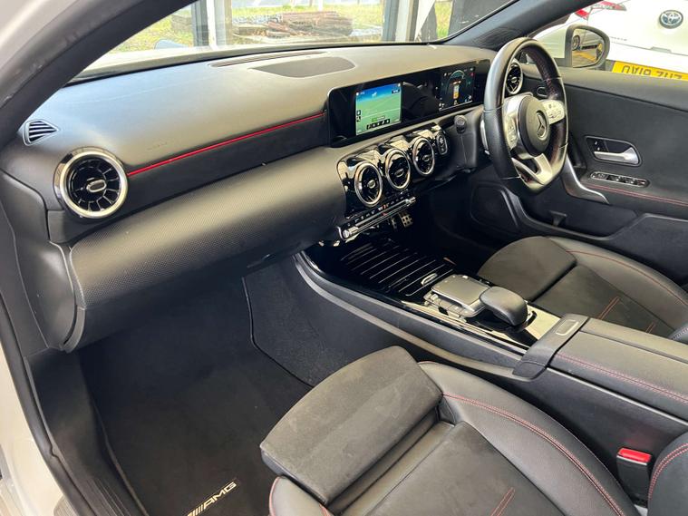 Finished in a pristine white, the A-Class exudes sophistication and elegance, turning heads wherever it goes. The AMG Line trim adds a sporty edge, with sleek design elements that enhance its dynamic presence on the road.
