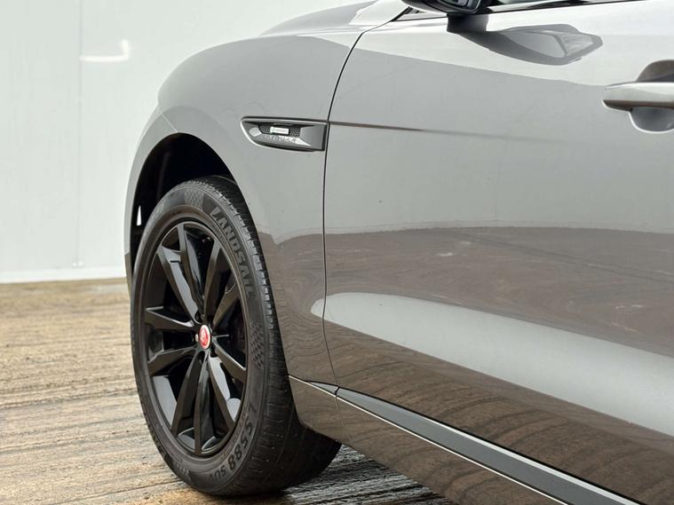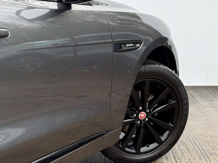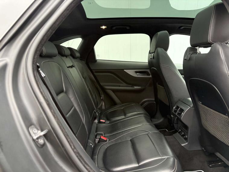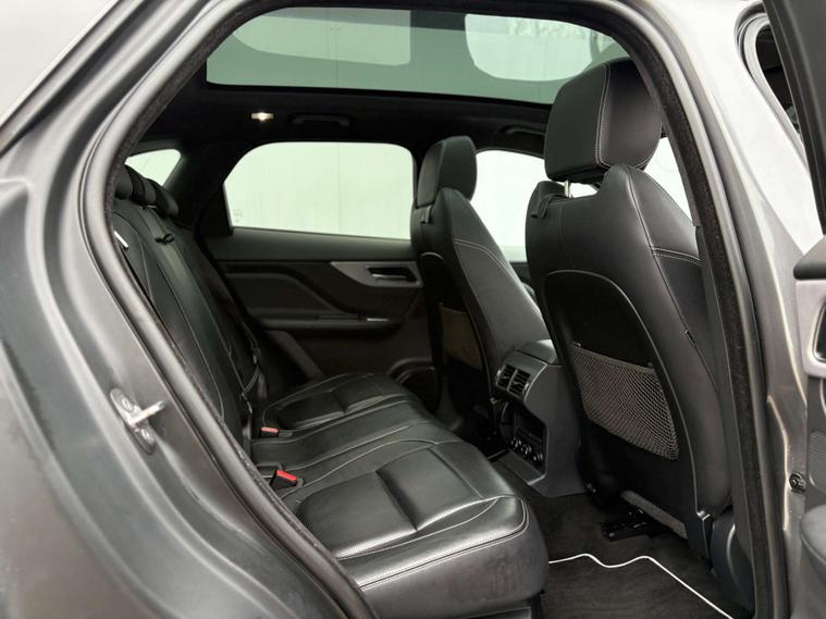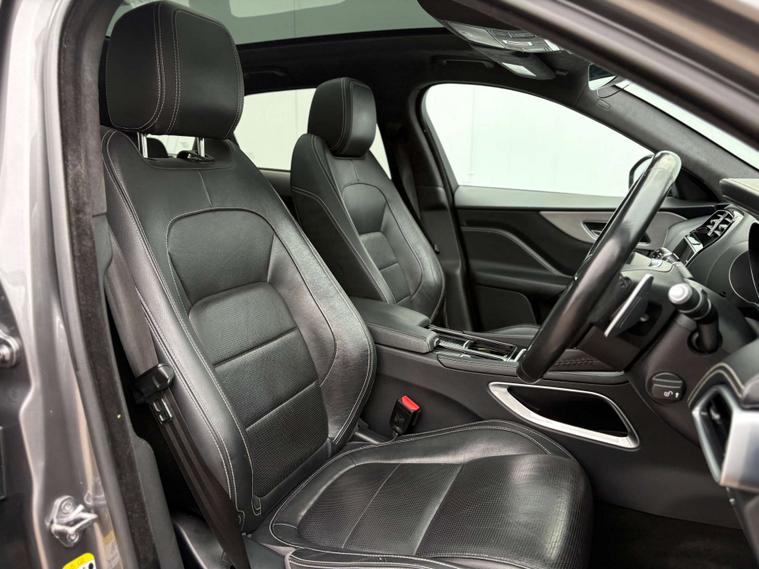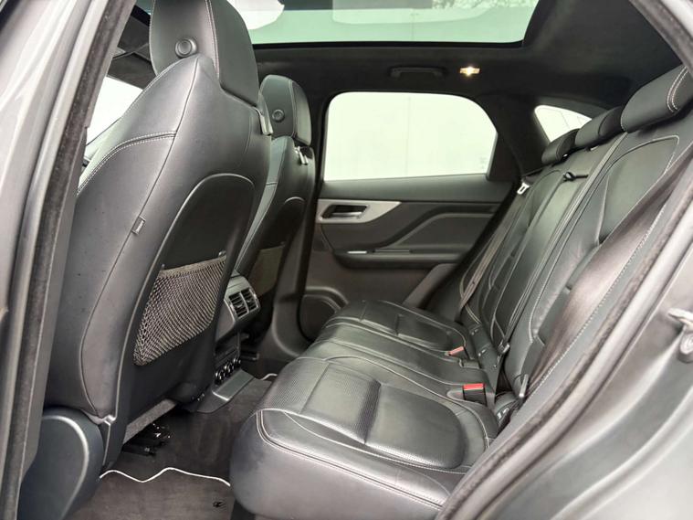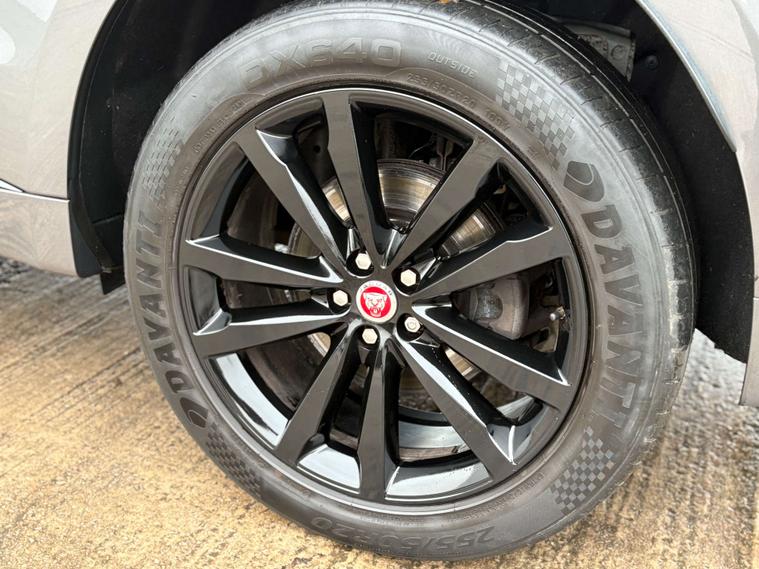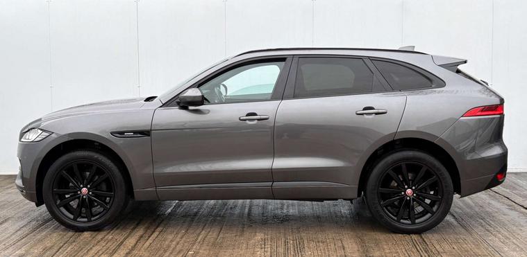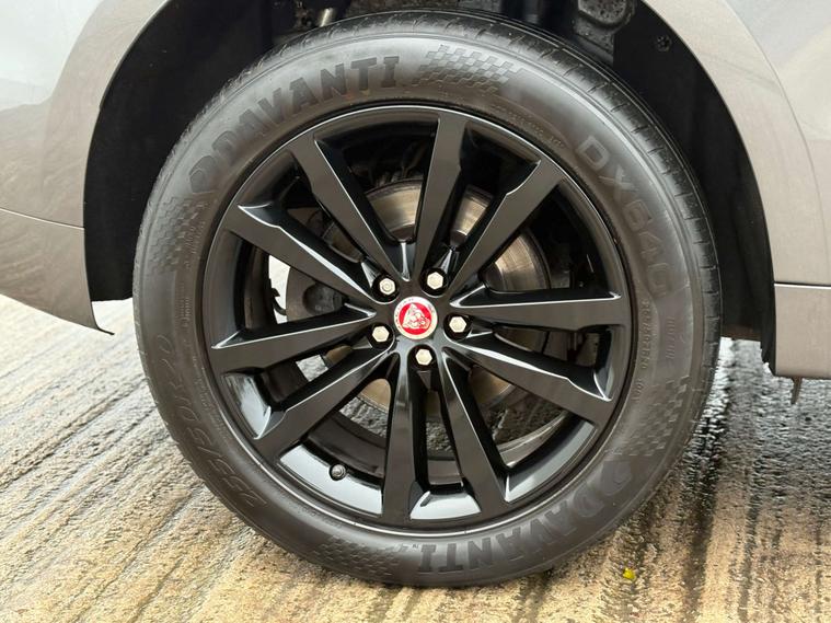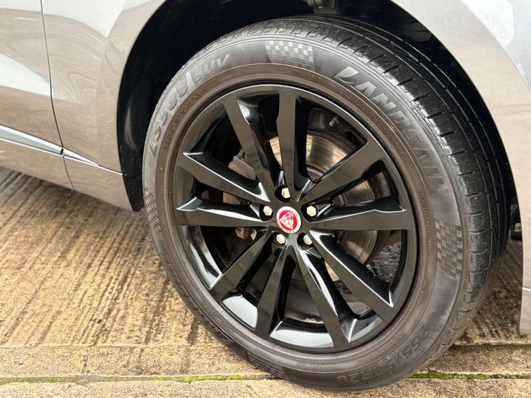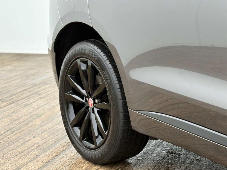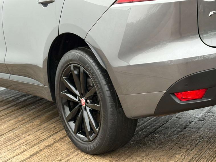 Finished in an elegant Carpathian Grey, the Jaguar F-pace exudes sophistication and style. Its sleek silhouette is complemented by striking 20-inch alloy wheels with a 5 split-spoke design and a gloss black finish, ensuring you make a statement wherever you go.