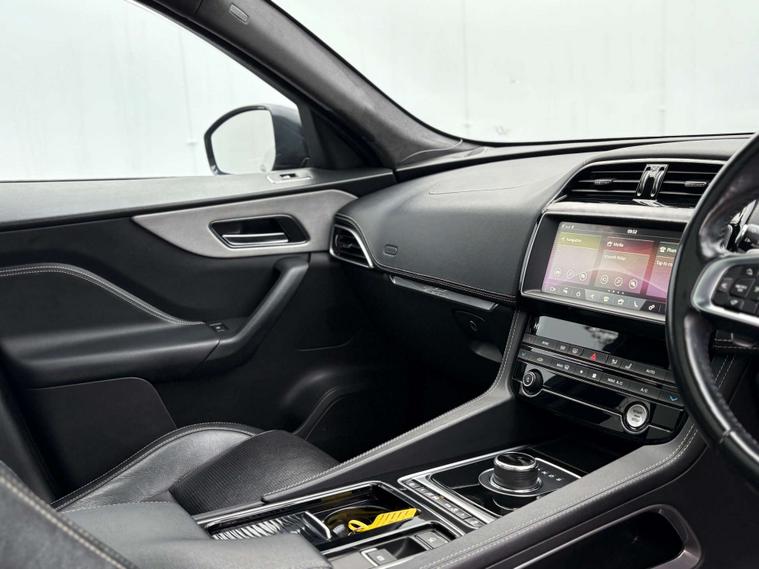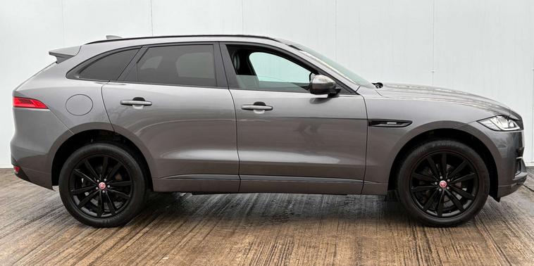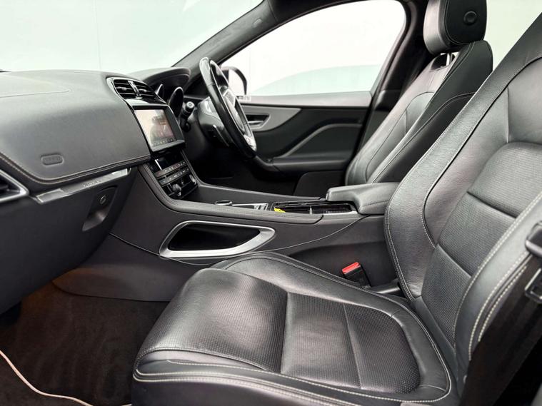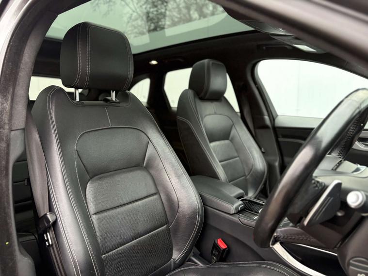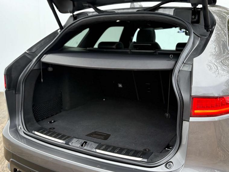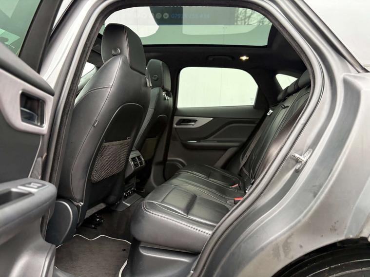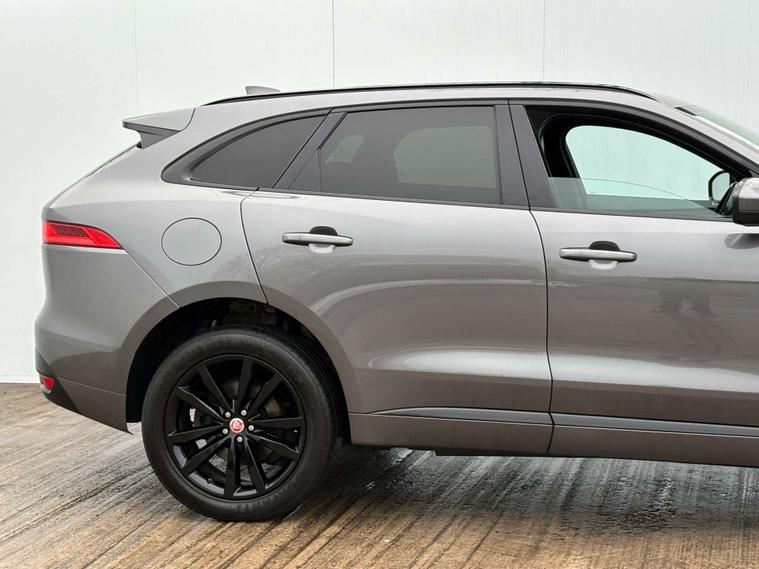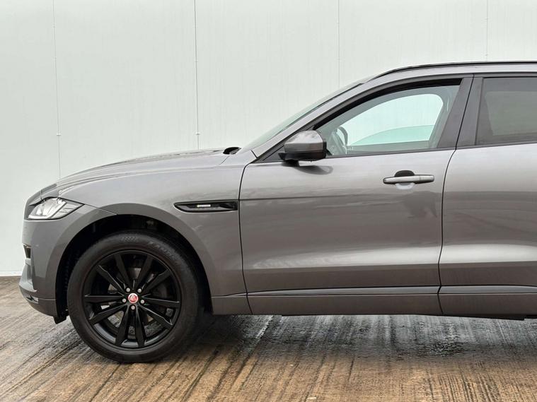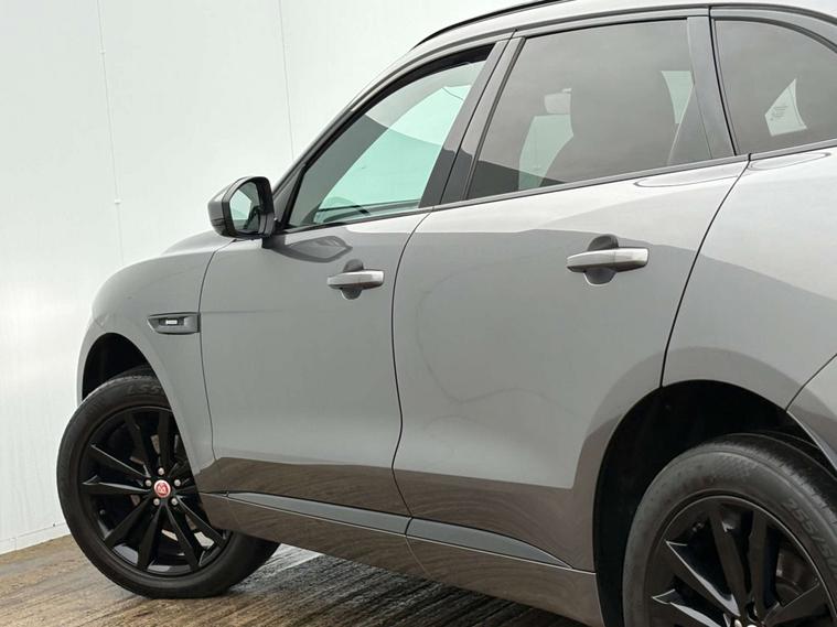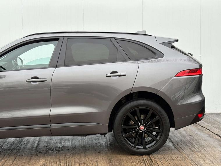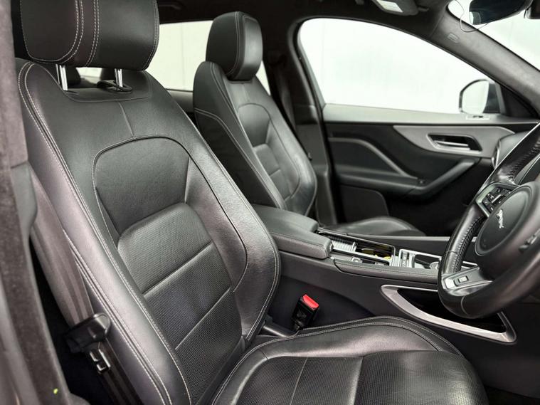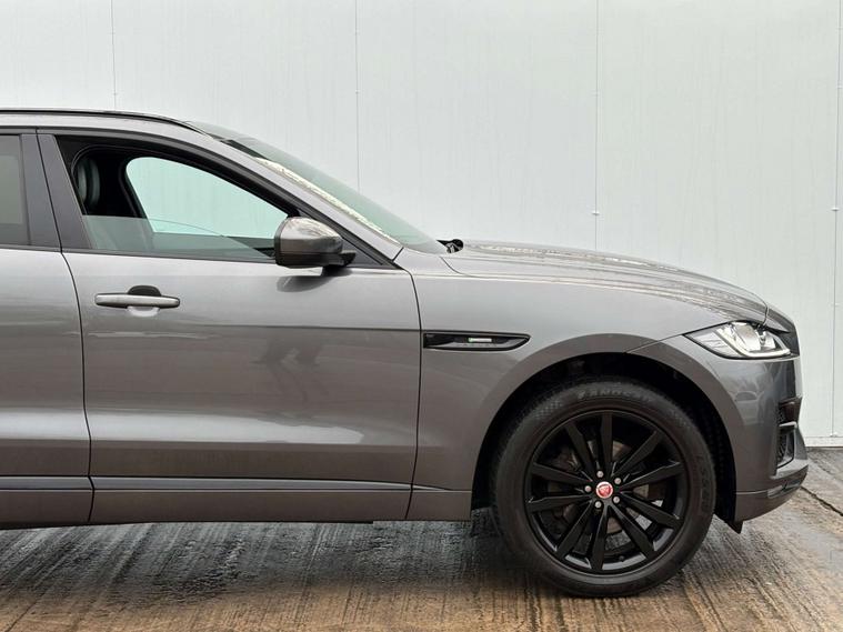 Finished in an elegant Carpathian Grey, the Jaguar F-pace exudes sophistication and style. Its sleek silhouette is complemented by striking 20-inch alloy wheels with a 5 split-spoke design and a gloss black finish, ensuring you make a statement wherever you go.