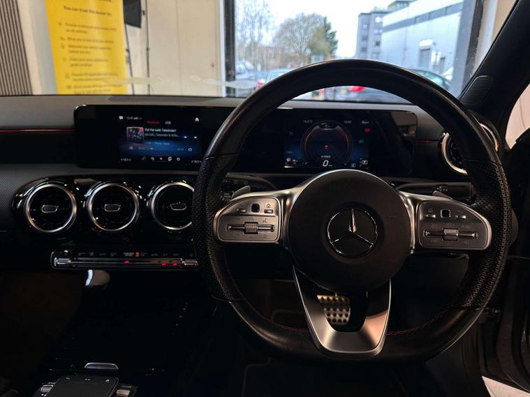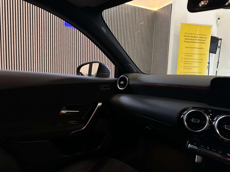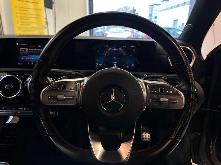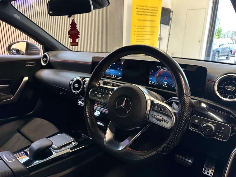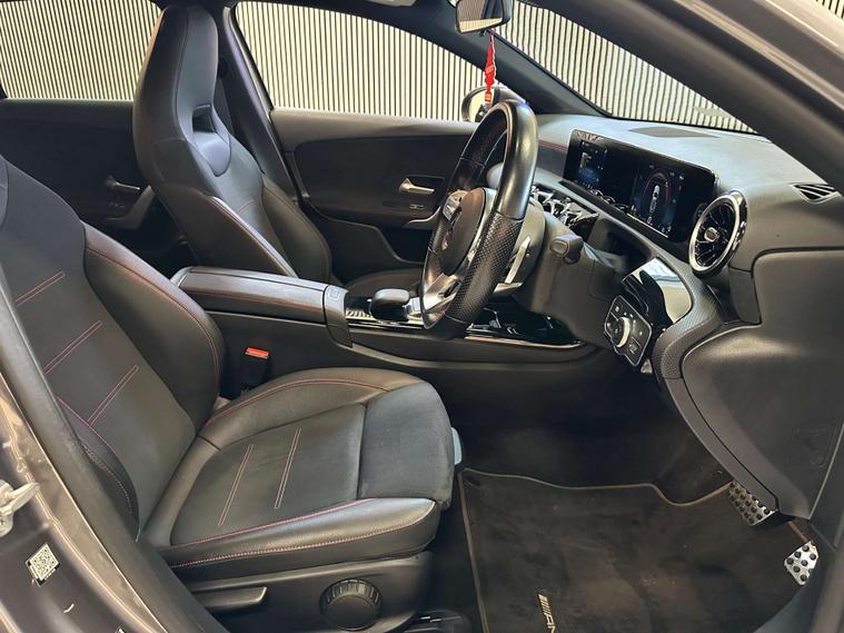 Dressed in a sophisticated Grey finish, the A-Class exudes elegance and style, turning heads wherever you go. The AMG Line trim adds a sporty edge, with dynamic design elements that enhance its already striking appearance. From the sleek contours to the iconic grille, every detail of this car has been meticulously crafted to perfection.
