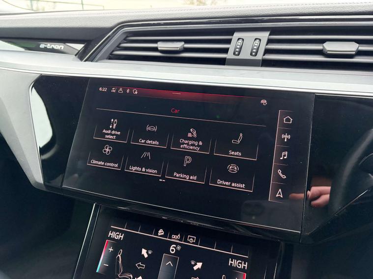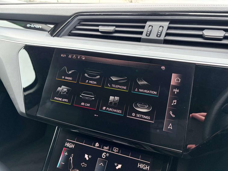 This 2019 Audi e-tron Launch Edition offers an exceptional blend of electric performance and advanced technology. As an all-electric, four-wheel-drive vehicle, it boasts a substantial 95 kWh battery, providing a maximum range of 226 miles when new. Charging is convenient, with a full charge at home taking approximately 14 hours using a 7kW charger, while rapid public charging can replenish the battery from empty to 80% in just 40 minutes. This Launch Edition comes equipped with the Audi Phone Box featuring wireless charging, a comprehensive Parking System Plus with 360-degree sensors and parking assistance, and Audi Side Assist for enhanced blind spot monitoring. Inside, you'll find a 2-Zone Automatic Air Conditioning system for optimal comfort and the Tour Pack, which includes adaptive cruise control.