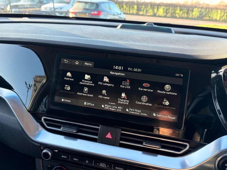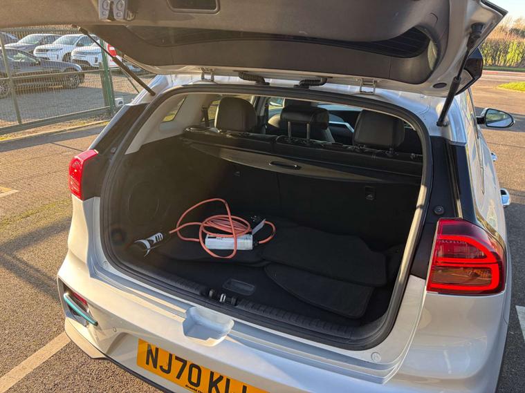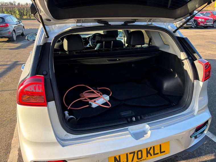 This 2020 Kia Niro 4 is a superb example, having been owned by just one person from new and boasting a clear vehicle history check. This electric model offers a substantial battery total capacity of 68 kWh, providing an impressive maximum range of 282 miles when new. For your convenience, a full charge at home using a 7kW charger takes approximately 9 hours and 35 minutes, while rapid charging to 80% from empty on a public charger can be achieved in as little as 54 minutes. Inside, you'll find a premium 8 speaker JBL sound system with a subwoofer and external amplifier, ensuring an immersive audio experience.