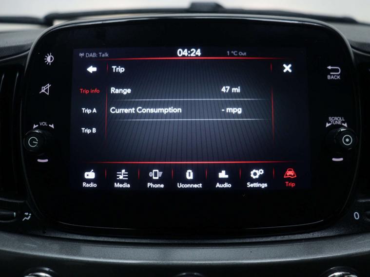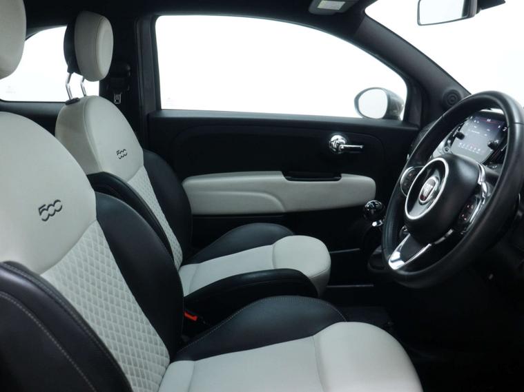 This Fiat 500 comes with a range of fantastic extras, including a stunning Fabric interior in White-Black with Black Ambience, giving it a modern and sophisticated look. The Electroclash Grey accents add a touch of luxury to this already impressive vehicle.