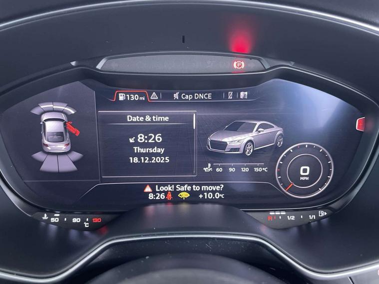 Inside, the cabin reflects Audi’s renowned build quality and innovation. The Technology Pack enhances connectivity and driver convenience, while front and rear parking sensors provide added confidence when manoeuvring. Completing the look are bold 19-inch alloy wheels, reinforcing the TT’s sporty character.