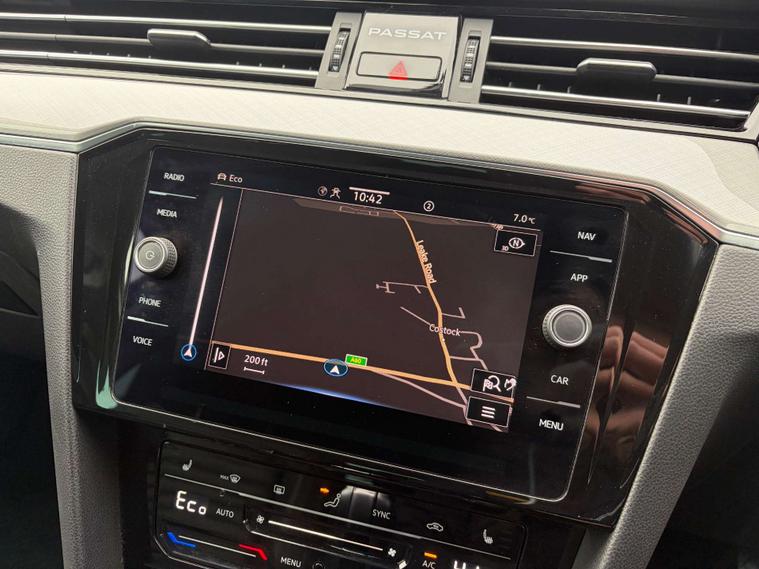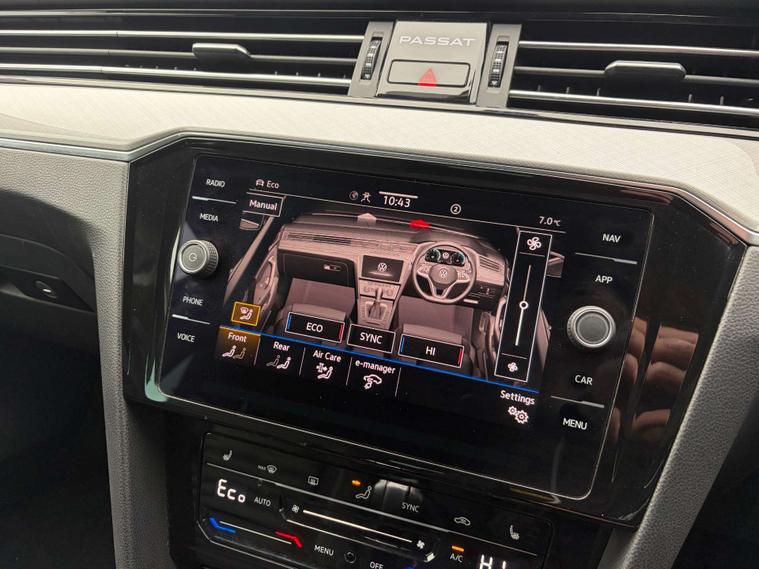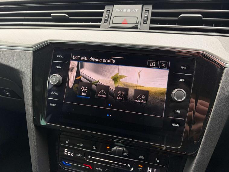 This 2022 Volkswagen Passat TSI GTE is a superb example, having had only one owner since new. This GTE trim model boasts a 1.4 litre petrol plug in hybrid engine, meeting the Euro 6 emission class. It comes equipped with a sophisticated 3 zone climate control system, ensuring comfort for all occupants. For effortless journeys, it features adaptive cruise control and automatic driving lights activated by a dusk sensor. The vehicle also benefits from all LED headlights with reflector technology, providing excellent visibility, and front and rear parking sensors to aid manoeuvrability.