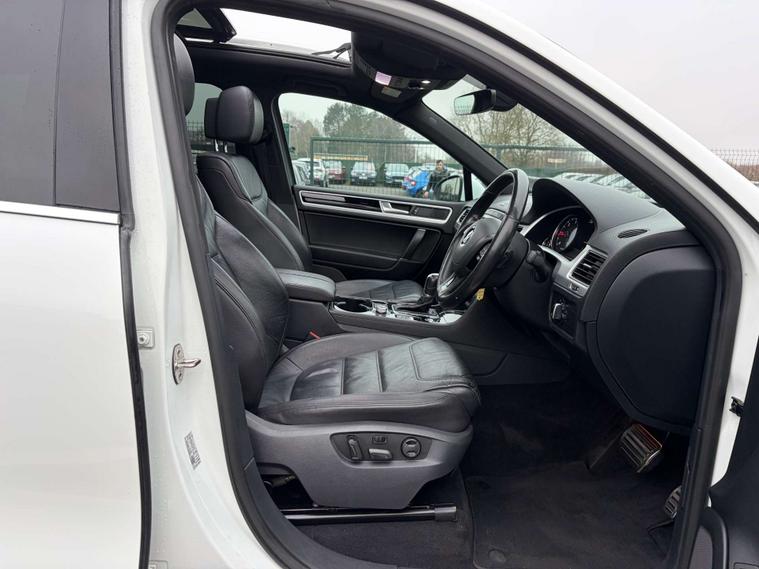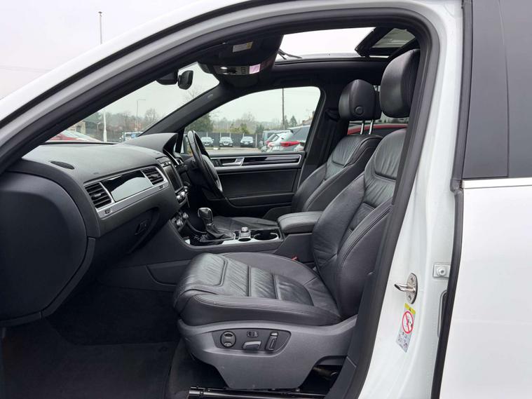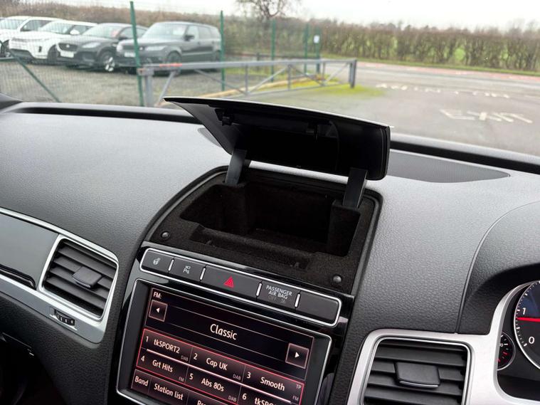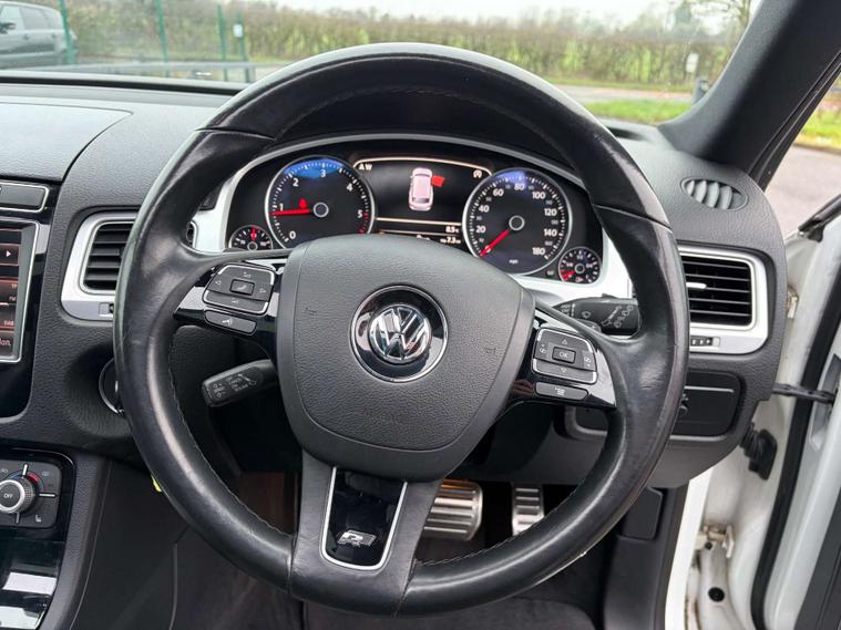 This 2018 Volkswagen Touareg TDI V6 R-Line Plus boasts a clear vehicle history, offering you peace of mind. As a Euro 6 compliant model, this four wheel drive SUV features a powerful 3.0 litre diesel engine and an impressive towing weight of 3500 kg. Inside, you'll find a spacious cabin equipped with R-Line Plus trim, a multifunction heated R-Line steering wheel with paddle shift, and a panoramic sunroof. For effortless manoeuvring, it includes Area View with a 360 degree camera and ultrasonic front and rear parking sensors with optical and audible alerts, all managed through the climate control system.