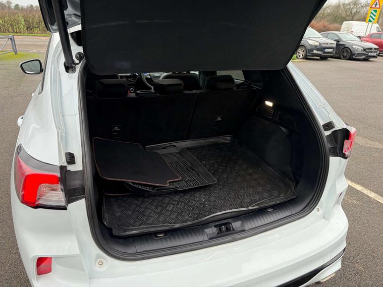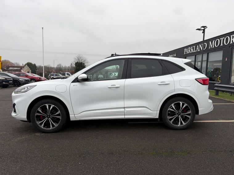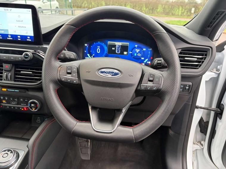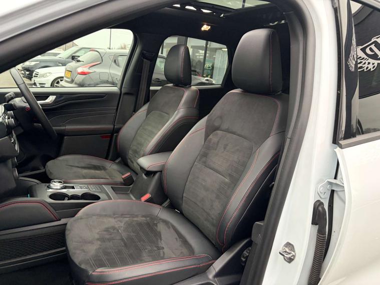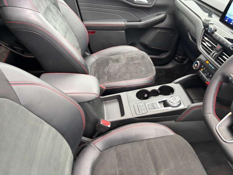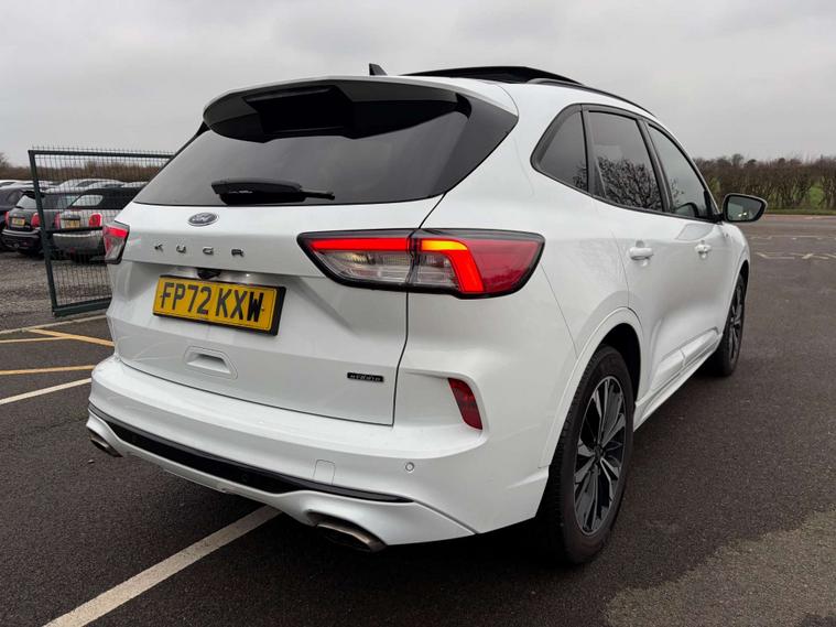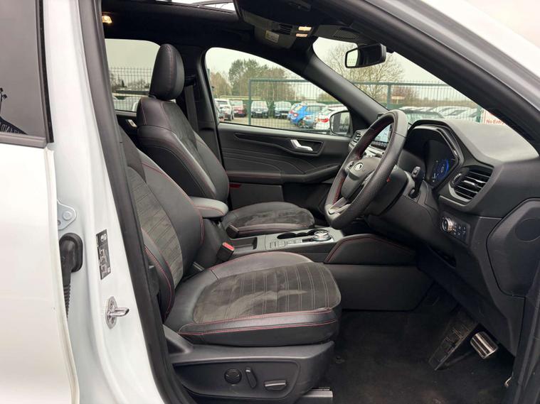 This 2022 Ford Kuga ST-Line X Edition is a superb example, boasting a clear vehicle history and having had only one owner from new. Powered by an efficient 2.5 litre petrol plug-in hybrid engine, this Euro 6 compliant model offers a refined driving experience. Inside, you'll find comfort and convenience with heated driver and passenger seats, while the power opening panoramic roof floods the cabin with natural light. Navigating and staying connected is effortless thanks to the Ford SYNC3 DAB Navigation System, complete with Android Auto and Apple CarPlay integration, all delivered through a premium branded sound system. Automatic headlights with auto high-low beam ensure optimal visibility, and the rear view camera, including parking assistance, makes manoeuvring simple.
