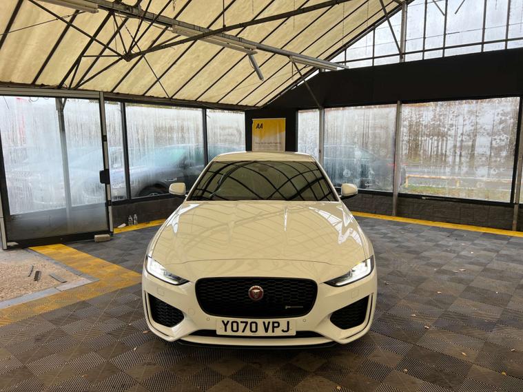 Finished in the striking Fuji White, the Jaguar Xe exudes sophistication and elegance, turning heads wherever it goes. Its sleek, aerodynamic lines and bold stance are a testament to Jaguar's commitment to crafting vehicles that are as beautiful as they are powerful.