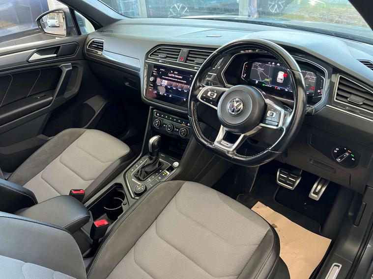 Step inside and you'll be greeted by a spacious and well-appointed interior, designed with both driver and passenger comfort in mind. The R-Line Tech trim adds a touch of luxury with its premium materials and advanced technology, making every drive an enjoyable experience. From the intuitive infotainment system to the cutting-edge safety features, this Tiguan is equipped to meet all your modern driving needs.