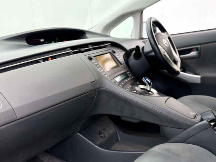 Finished in a stunning Pearl White, the Toyota Prius exudes sophistication and modernity. Its sleek design is complemented by the Galena dark grey cloth interior, offering a refined and comfortable driving experience. This combination of colours not only enhances the car's aesthetic appeal but also ensures that you travel in style.