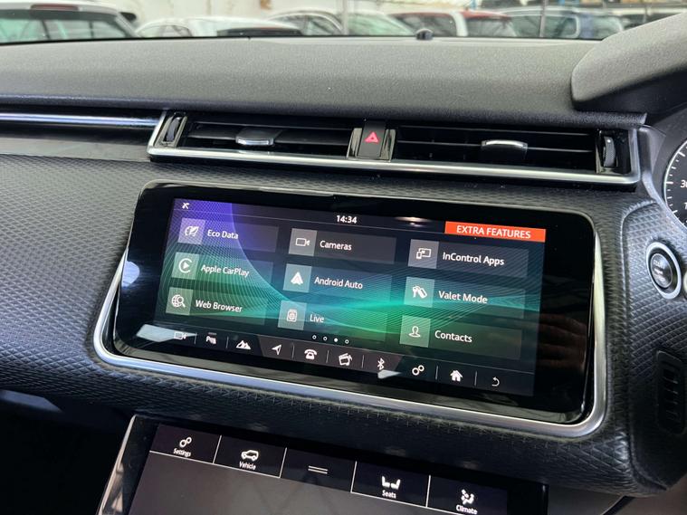 For those who require versatility, the Electrically Deployable Towbar offers seamless functionality, allowing you to tow with ease and confidence. The Black Roof Rails and Narvik Black Contrast Roof add a touch of elegance and sportiness, making this Land Rover Range Rover Velar a true head-turner on the road.