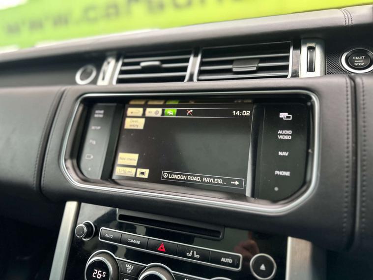 MASSIVE SPEC / TV'S IN REAR / PANORAMIC SUNROOF / FRESH INTERIM SERVICE / This 2014 Land Rover Range Rover SD V8 Autobiography offers a remarkable blend of luxury and capability, boasting a powerful 4.4L Diesel engine and a robust Four Wheel Drive system. As a top tier Autobiography model, it comes equipped with a suite of advanced driver aids including Blind Spot Monitor with Closing Vehicle Sensing, Adaptive Cruise Control, and Front Parking Aid with a visual display. The inclusion of a Fixed Panoramic Roof enhances the sense of space, while the Trailer Hitch Guidance and a 3500 kg towing weight make it exceptionally practical for towing needs.
