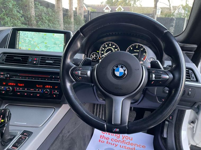 Superb value, low-mileage BMW 640d M Sport, finished in crisp Alpine White with Black Dakota Leather interior. A fantastic-looking example enhanced by the aggressive M Sport body styling and striking 20 inch alloy wheels, giving it real road presence. This car boasts a great specification, including the highly desirable Heads-Up Display, and has been clearly cherished — just 2 owners from new, with the last owner keeping it for 9 years. A powerful, refined grand tourer that offers exceptional value for money at this price point. Not to be missed — examples like this don’t come around often.