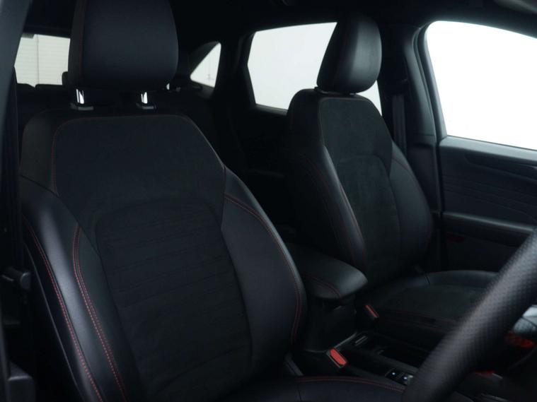 Finished in a striking Solar Silver colour, this Ford Kuga stands out from the crowd. The interior is equally impressive, featuring Partial Sensico - Rapton Cloth - Black with Red Stitching, adding a touch of luxury to your driving experience.