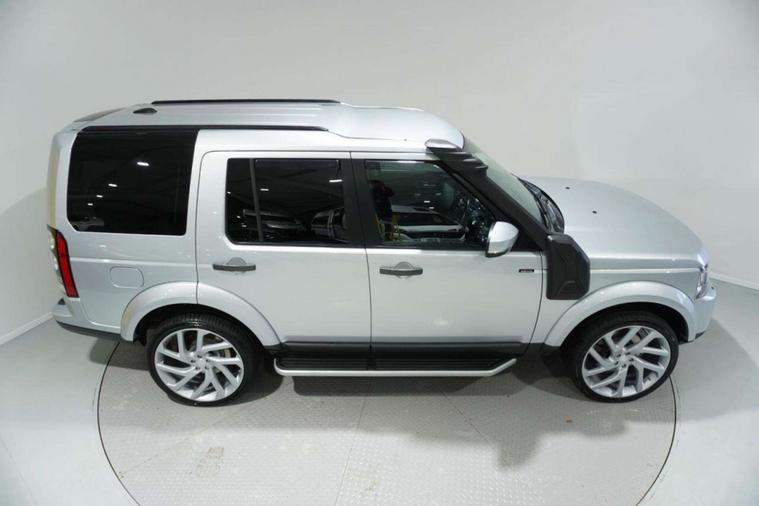 FINISHED IN STUNNING RHODIUM SILVER / INDUS SILVER WITH ALMOND LEATHER UPHOLSTERY, PRIVACY GLASS, ROOF RAILS, AND UPGRADED 19" ALLOY WHEELS, THIS DISCOVERY 4 PRESENTS BEAUTIFULLY WITH A COMMANDING ROAD PRESENCE. IT ALSO BENEFITS FROM A PROFESSIONAL SNORKEL UPGRADE, MAKING IT EVEN MORE CAPABLE WHEN VENTURING OFF-ROAD.
