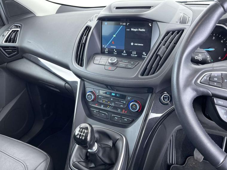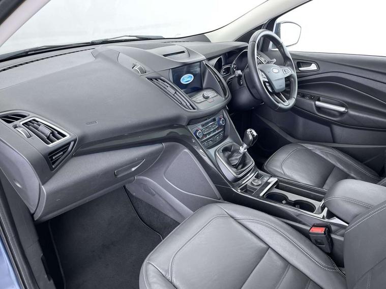 The Titanium X specification offers an excellent level of equipment, including a panoramic glass roof that fills the cabin with natural light, satellite navigation, Apple CarPlay & Android Auto for seamless smartphone connectivity, heated front seats for added comfort, and parking assist to make manoeuvring effortless. The 18-inch alloy wheels complete the look, giving the Kuga a confident and refined road presence.