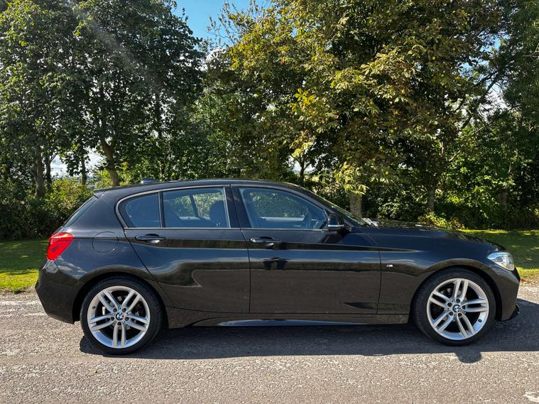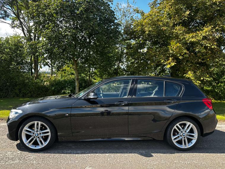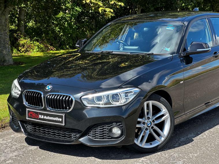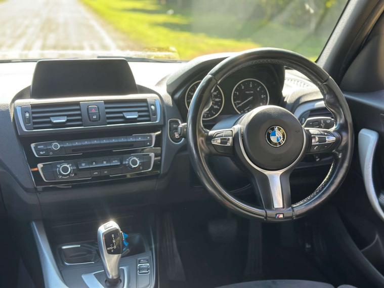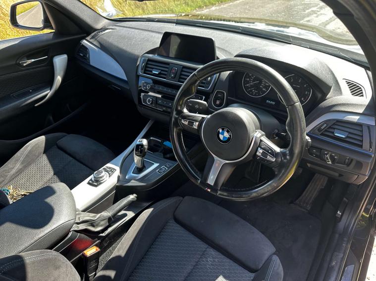 Gloss black paint, BMW LED headlights, LED Angel Eye daytime running lights, 18” BMW Alloy wheels in silver, M Sport exterior badging, two tone M sport Interior with blue hexagonal stitching, all round electric windows, automatic headlights, multifunctional M sport steering wheel, keyless ignition, factory fitted I drive, radio, CD player, cup holders, Bluetooth connectivity, Handsfree technology, navigation, 12v socket, leather armrest with storage, auxiliary input, USB port, ISOFIX, 2 X keys.
