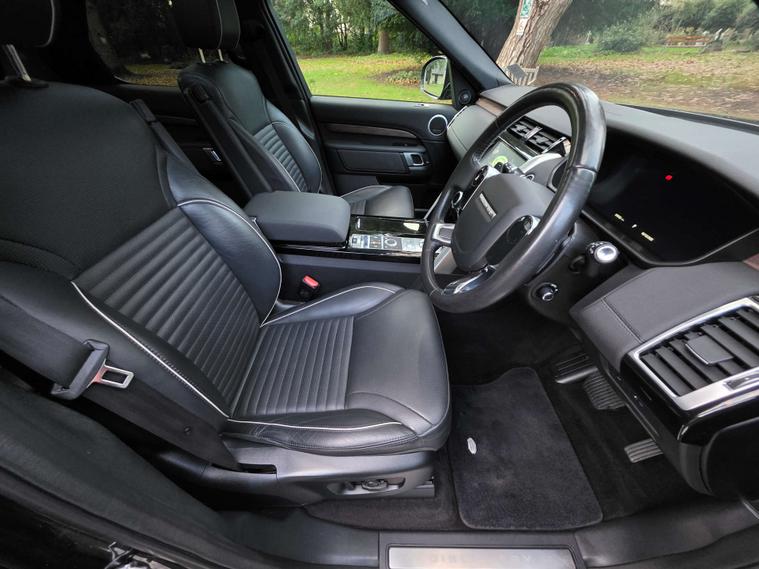 This 2019 Land Rover Discovery SD V6 HSE boasts a full service history, offering peace of mind for its next owner. This capable seven seat four wheel drive is powered by a 3.0 litre diesel engine and meets Euro 6 emissions standards. It comes equipped with striking 22 inch alloy wheels in a Satin Dark Grey Diamond Turned finish, a luxurious Meridian surround sound system, and a heated steering wheel for added comfort. The impressive sliding front sunroof and fixed rear panoramic roof create an airy and open cabin environment.