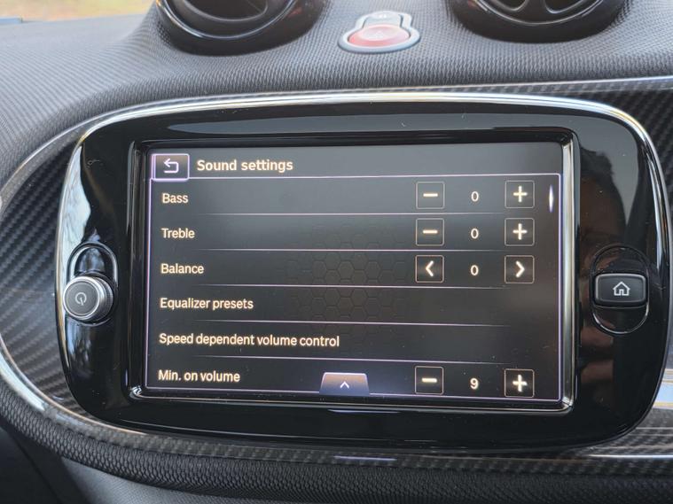 Navigating tight spaces is made easier with the Rear Parking Aid, featuring an acoustic warning and a reversing camera. The Rain and Light sensor automatically adjusts headlights, enhancing visibility and safety. These features collectively demonstrate how this Smart Fortwo BRABUS Line offers a superior driving experience compared to other vehicles in its class. Its compact size, combined with these advanced technologies, makes it an ideal choice for urban environments.