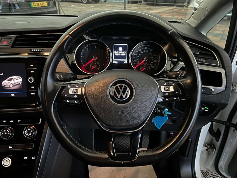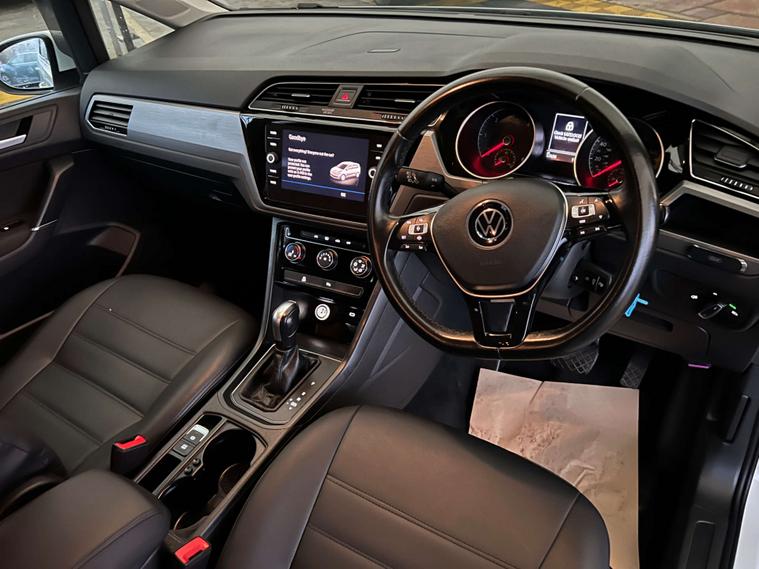 Finished in a striking Pure White, the Volkswagen Touran exudes a timeless elegance that is sure to turn heads wherever you go. Step inside, and you'll be greeted by the luxurious Lasano Cloth in Titan Black, offering a sophisticated and comfortable interior that makes every journey a pleasure.
