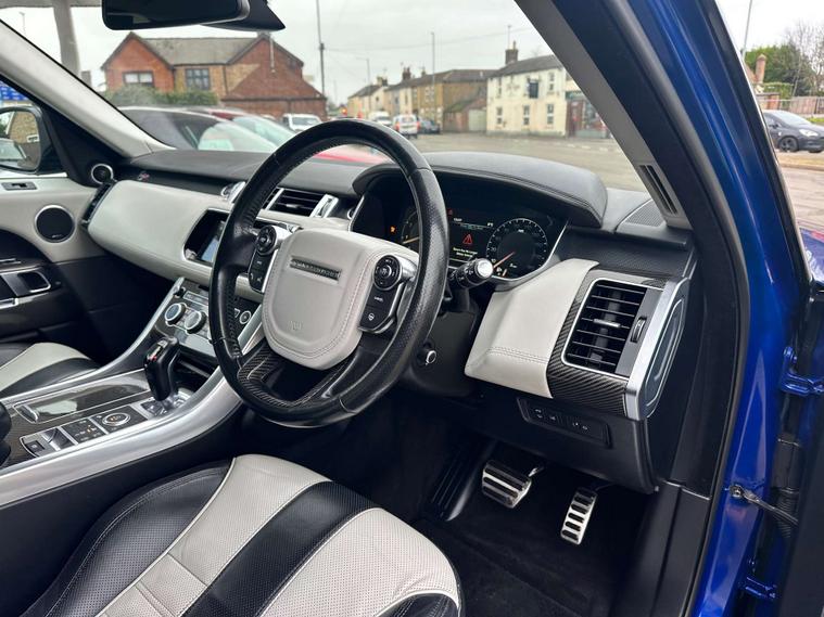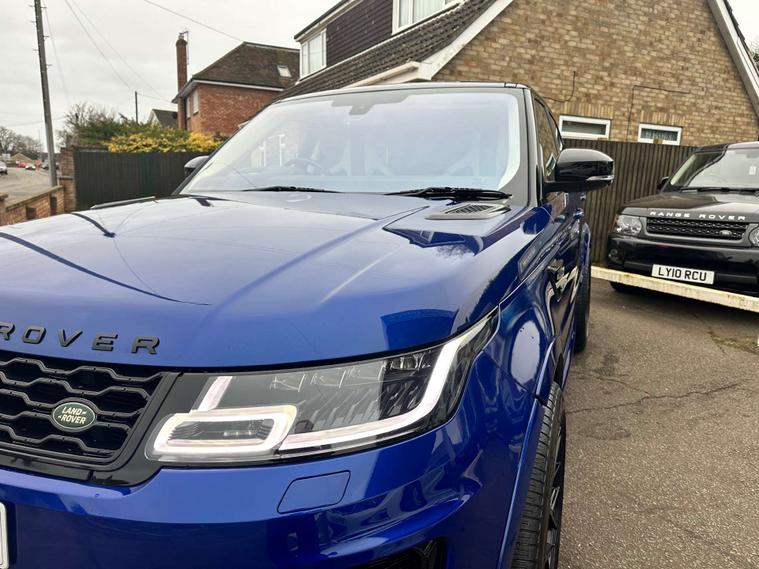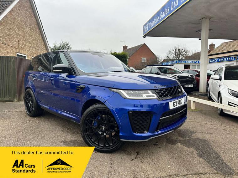 Introducing the Land Rover Range Rover Sport Svr V8 - the epitome of luxury and performance. This stunning vehicle, finished in a sleek Blue colour, is sure to turn heads wherever you go.
