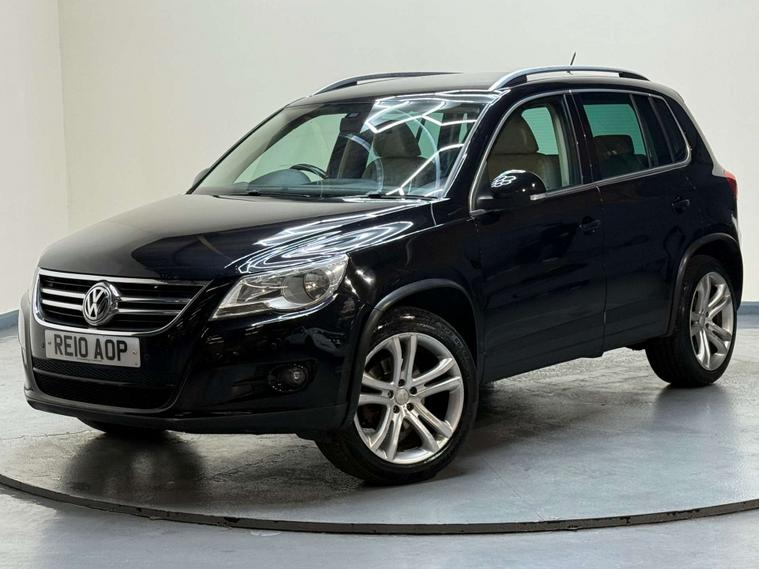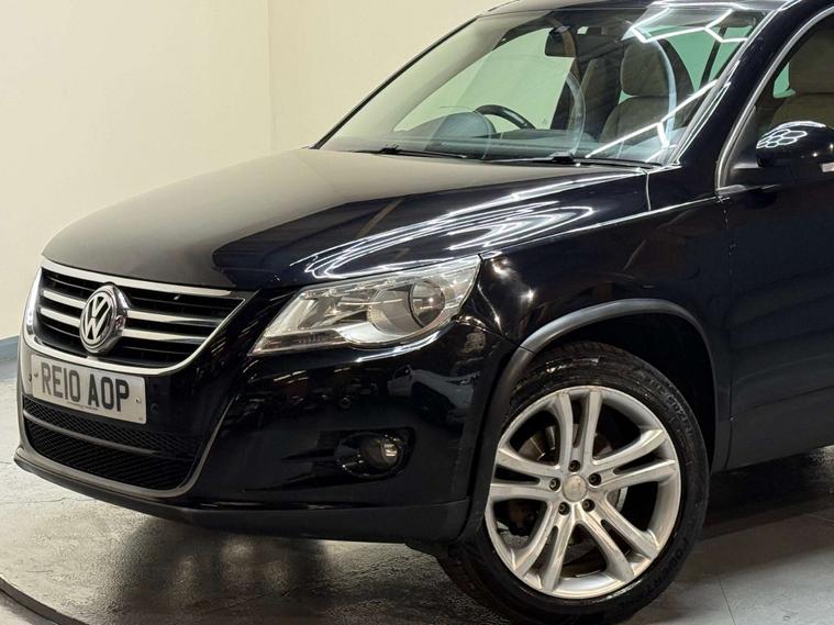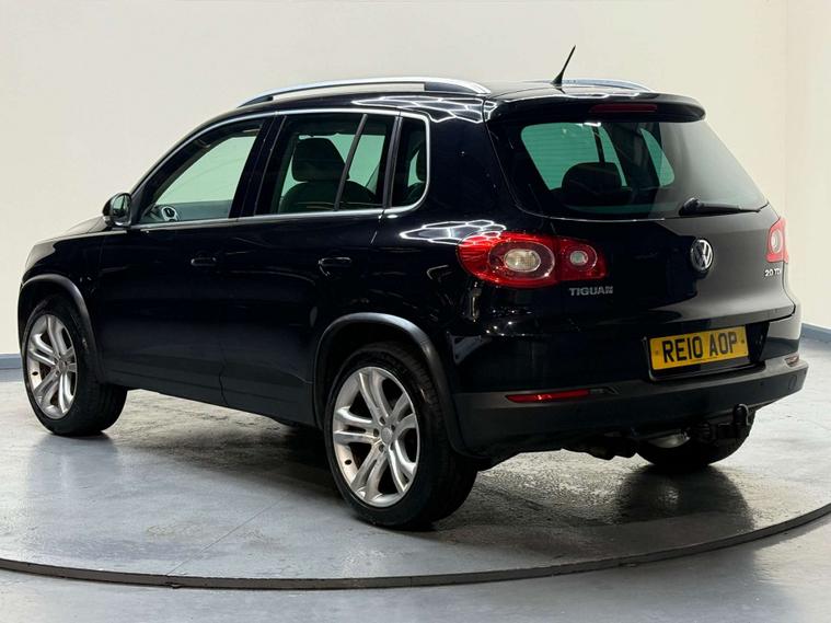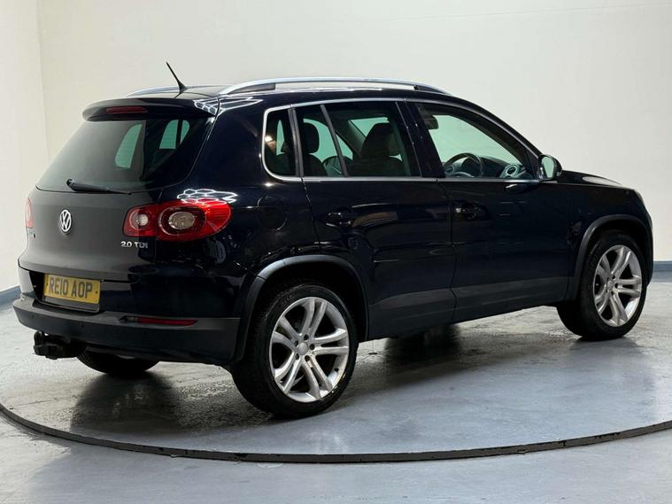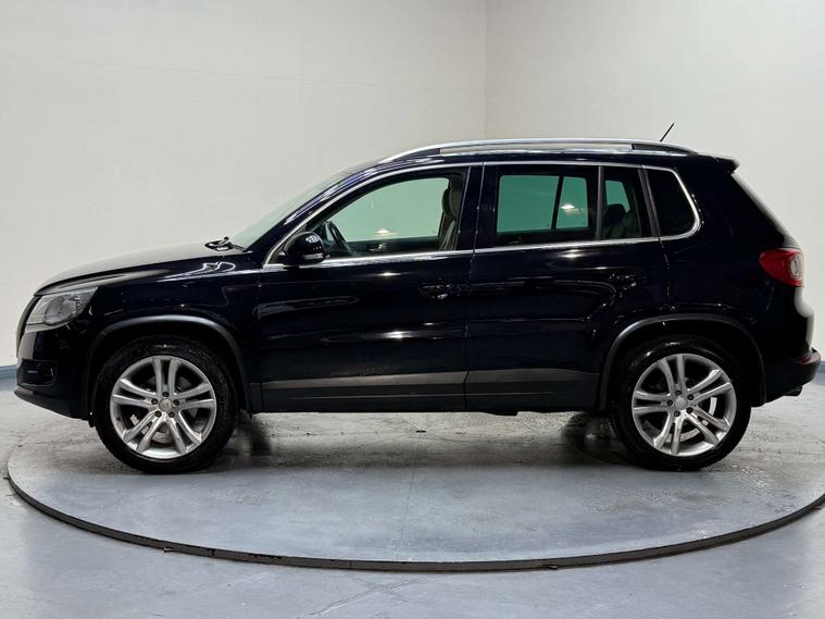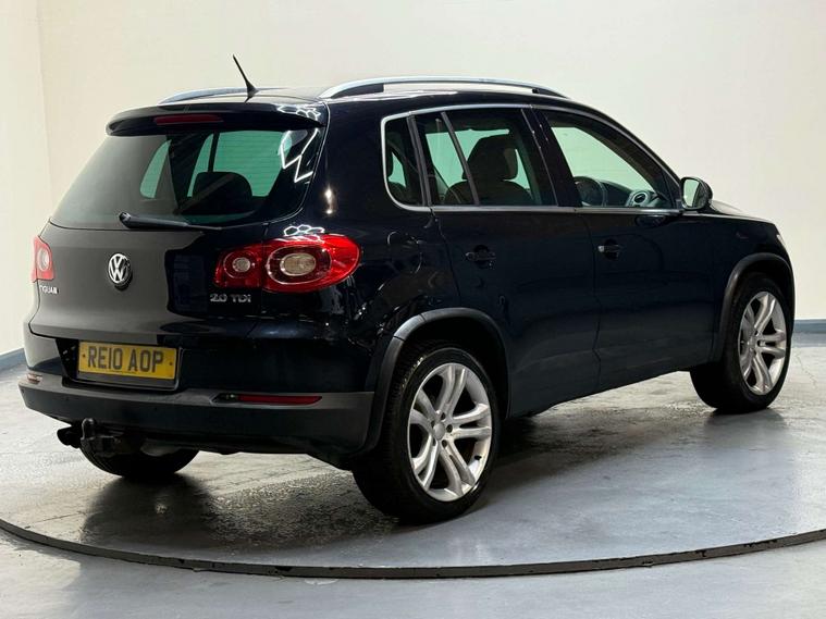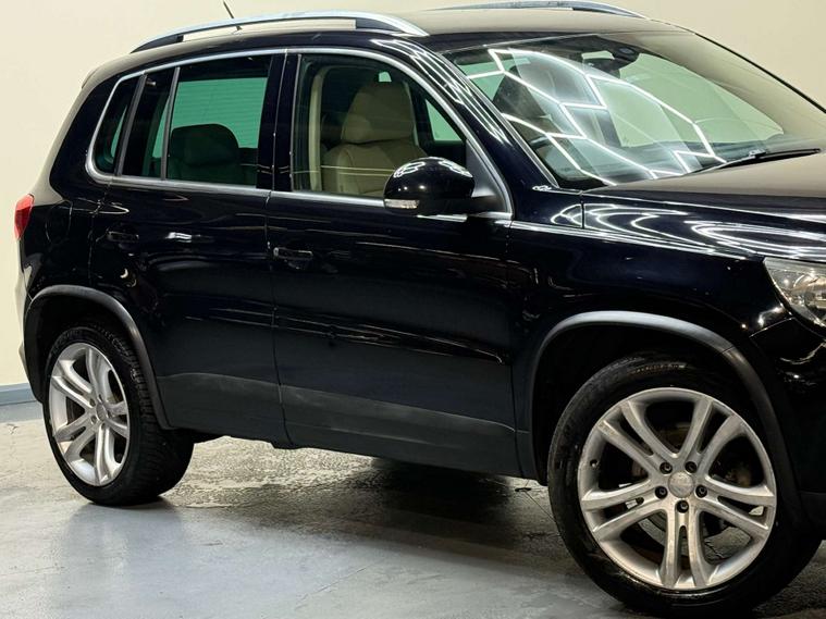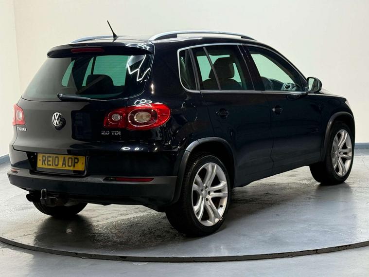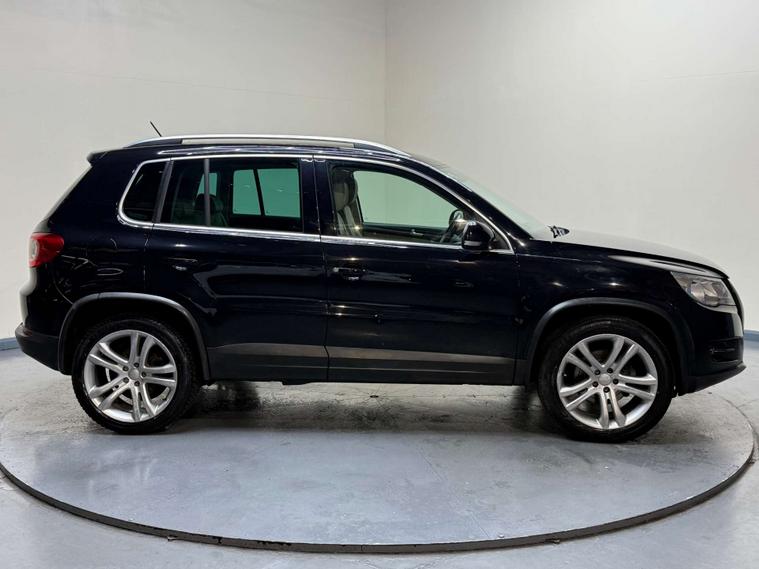 Introducing the Volkswagen Tiguan 2.0 Tiguan Sport TDI 4Motion 140 Auto 4WD 5dr, a true powerhouse on the road. With a sleek Black finish, this vehicle exudes style and sophistication.