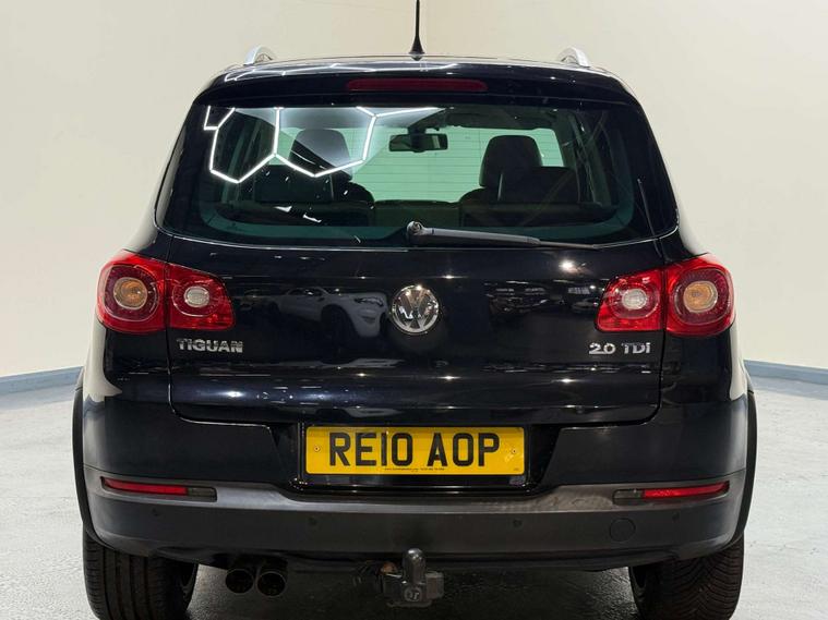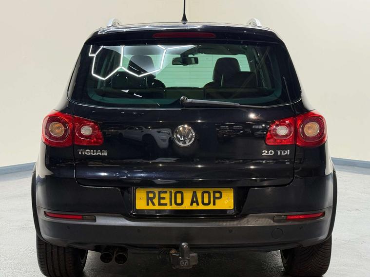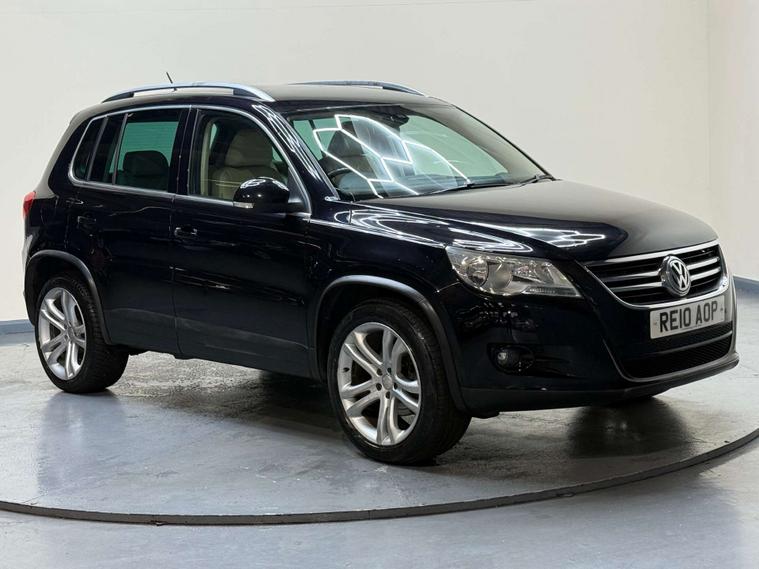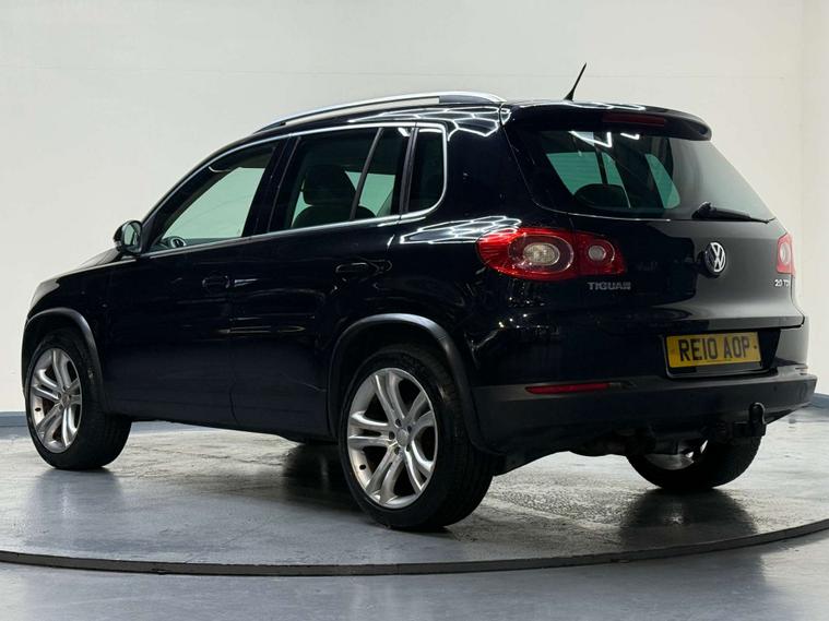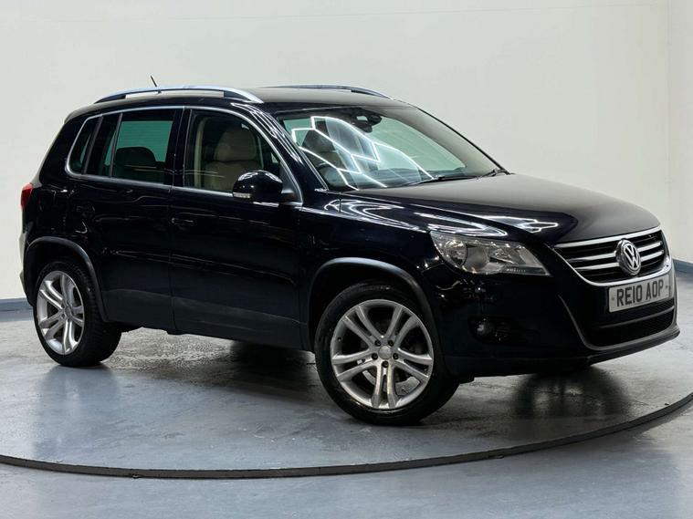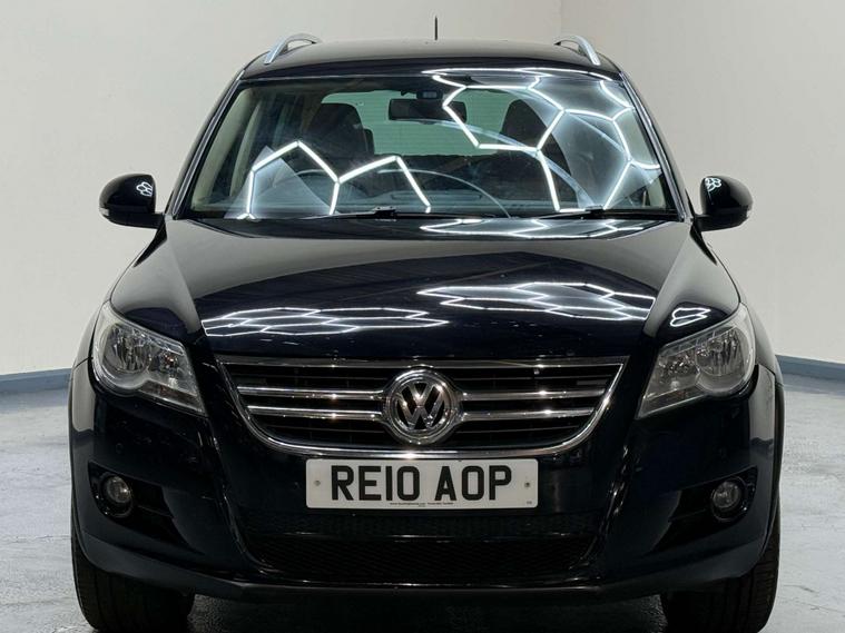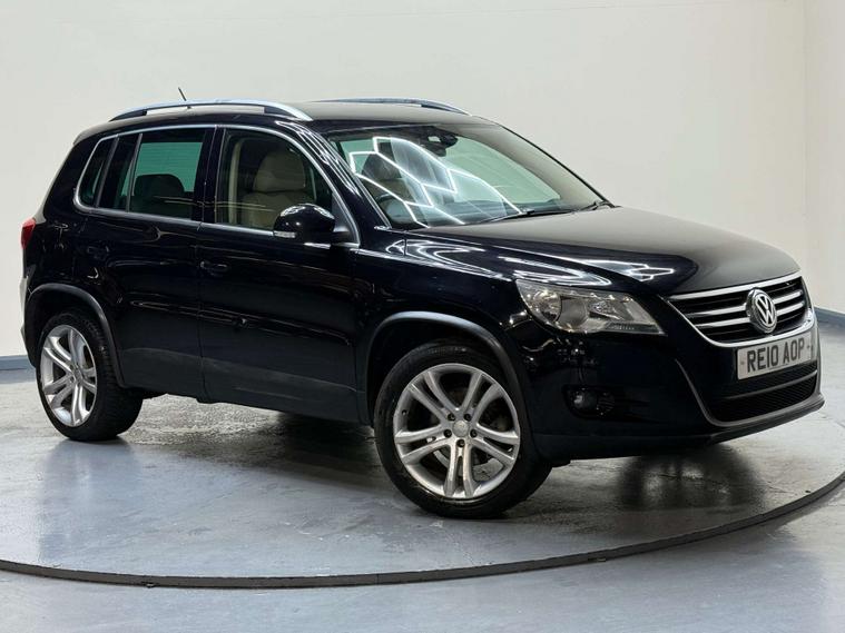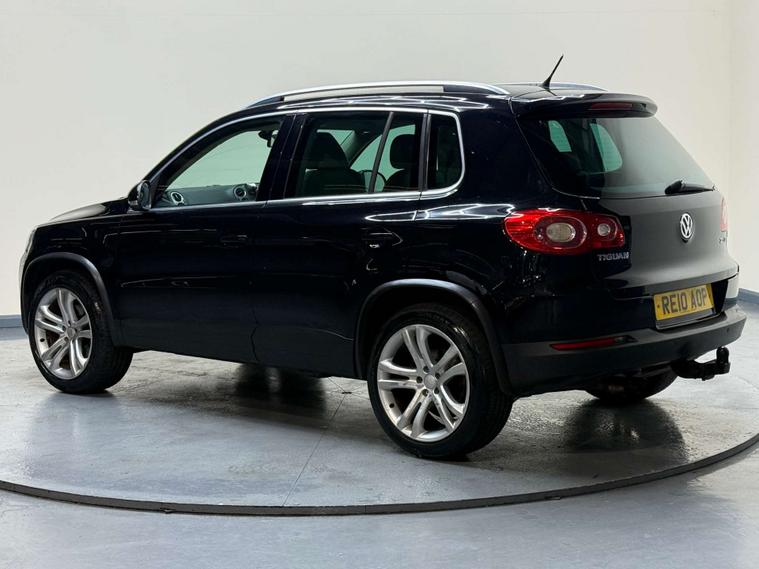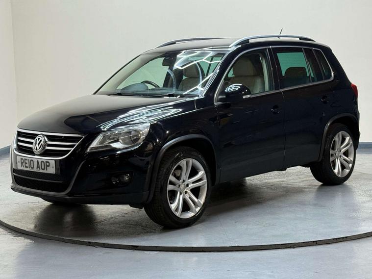 Introducing the Volkswagen Tiguan 2.0 Tiguan Sport TDI 4Motion 140 Auto 4WD 5dr, a true powerhouse on the road. With a sleek Black finish, this vehicle exudes style and sophistication.