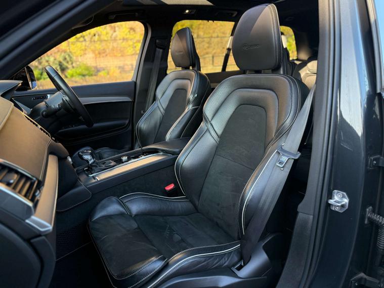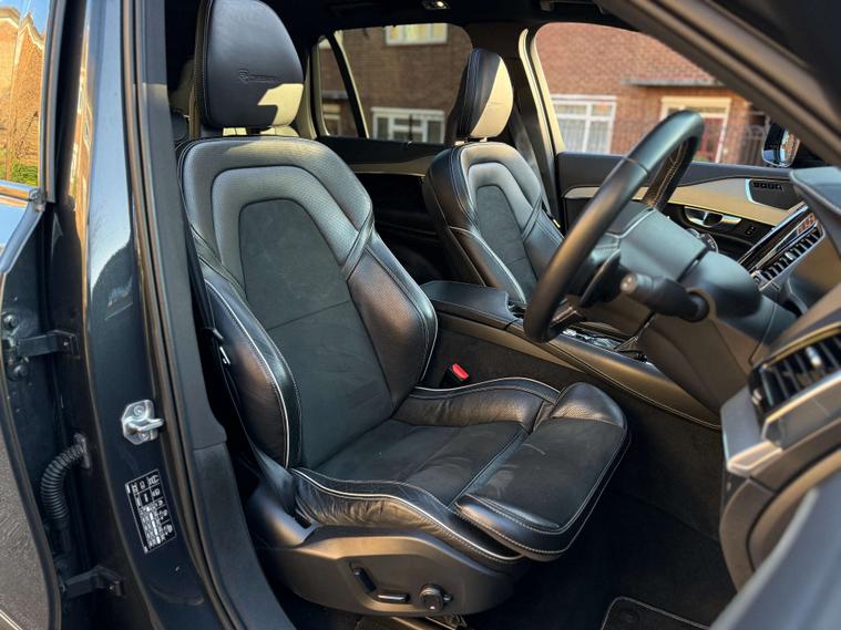 The XC90 T6 R Design Pro excels with its comprehensive comfort and convenience features. The Seven Seat Comfort Pack includes independent rear air conditioning and climate control, ensuring a pleasant environment for all passengers. The Family Pack and Xenium Pack further enhance usability, with features like a panoramic sunroof, 360 degree parking assistance, and front and rear parking sensors. The inclusion of a power glass tilt and slide panoramic sunroof with a sun curtain adds a touch of luxury. Performance is also a strong point, with an acceleration of 0-60mph in just 6.1 seconds, demonstrating a dynamic driving experience that sets it apart from many other vehicles in its class.