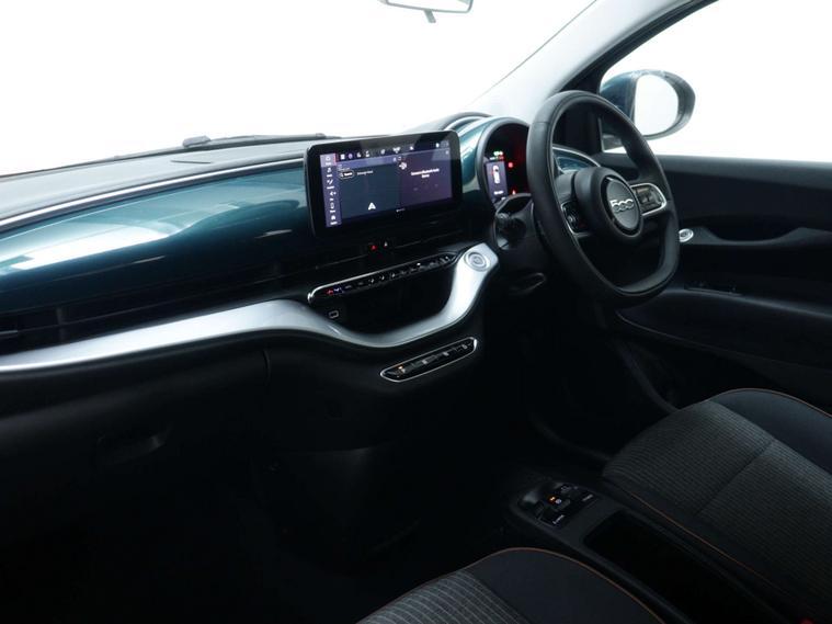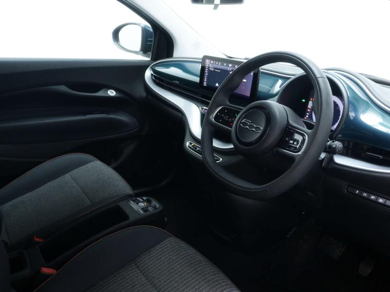 Finished in a stunning Green colour, the Fiat 500e comes with some fantastic extras, including Fabric Dark Grey/Black interior with a Body Coloured Dashboard, Ocean Green accents, and a Charging Cable in Mode 2.